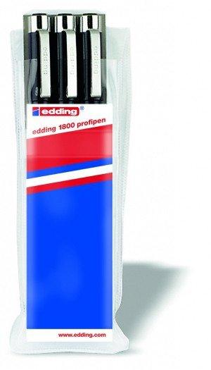 PROFIPEN - Fineliner Mit dem klassischen edding 1800 Fineliner wird Zeichnen und Schreiben zu einem Vergnügen! Die intensiv pigmentierte Tinte überzeugt überall, egal ob im Büro oder zu Hause. im Weichplastik-Etui 3 er Set: je 1 schwarzer Stift 0.1, 0.35, 0.5 mm Fineliner