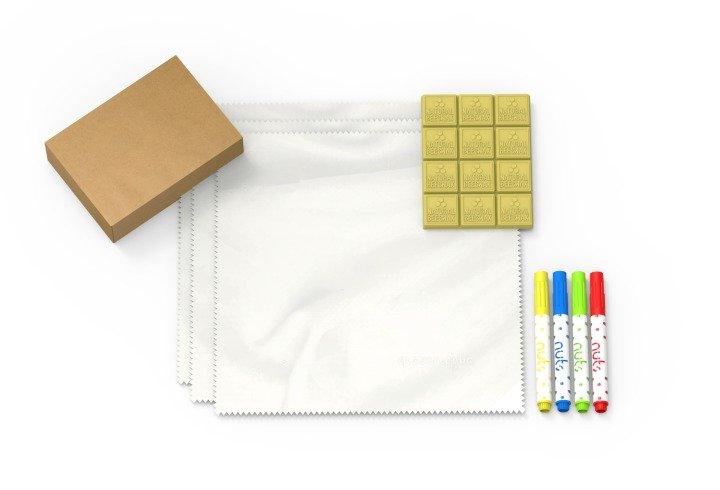 DIY Bienenwachstuch Set für 3 Bienenwachstücher.Inhalt: · 3x 25 x 25 cm weiße Bio Baumwolltücher· 4x Filzstifte mit Lebensmittelfarbe: grün, gelb, blau, rot· 1x Tafel NUTS BienenwachsmischungDie Bienenwachsmischung besteht aus Bio-Bienenwachs, Kokosöl und BaumharzDie Inhaltsstoffe sind lebebensmittelecht, biologisch und frei von PestizidenStellen Sie ganz einfach Ihre eigenen und individuellen Bienenwachstücher her!Im Backofen:· Baumwolltuch nach Belieben mit den Filzstiften bemalenBackofen auf 80°C vorheizenBackpapier auf das Backblech legen und das neue Baumwolltuch darauf legen.Mit einer Käsereibe 3 Stück der Bienenwachsmischung auf das Tuch reiben und gleichmässig verteilen.5 min backenDas Backblech aus dem Ofen nehmen und den flüssigen Wachs mit einem Pinsel gleichmässig verteilen.Abkühlen lassen und fertig!Mit dem Bügeleisen:· Baumwolltuch nach Belieben mit den Filzstiften bemalenBackpapier auf eine flache Oberfläche legen, das Wachstuch bzw. Baumwolltuch darauf legen.Mit einer Käsereibe die Bienenwachsmischung auf das Tuch reiben und gleichmässig verteilen und ein 2. Backpapier darauf platzieren.Die Bienenwachmischung mit dem Bügeleisen einbügeln.Abkühlen lassen, das Backpapier entfernen und fertig!Vorteile von Bienenwachstücher:· Sie sind wiederverwendbar, biologisch abbaubar und nachhaltig.· Bis zu einem Jahr wiederverwendbar anschliessend können sie aufgefrischt oder kompostiert werden.· Zum Reinigen einfach mit handwarmem (max. 40° C) Wasser abspülen.· Die Tücher können auch dazu verwendet werden kleine Schalen und Müslischüsseln abzudecken.· Nicht geeignet für rohes Fleisch und rohen Fisch.· Nicht zur Verwendung mit fettreichen Lebensmitteln.