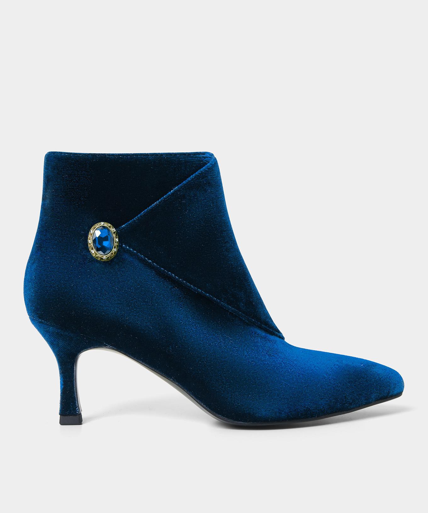 Diese Samt-Stiefeletten verfügen über ein einzigartiges Wickeldesign, das jedem Outfit einen Hauch von Eleganz verleiht. Die spitze Zehenpartie und der Kitten-Heel-Absatz schaffen eine raffinierte Silhouette, während die dekorative Schmuckverzierung ein luxuriöses Detail bietet.