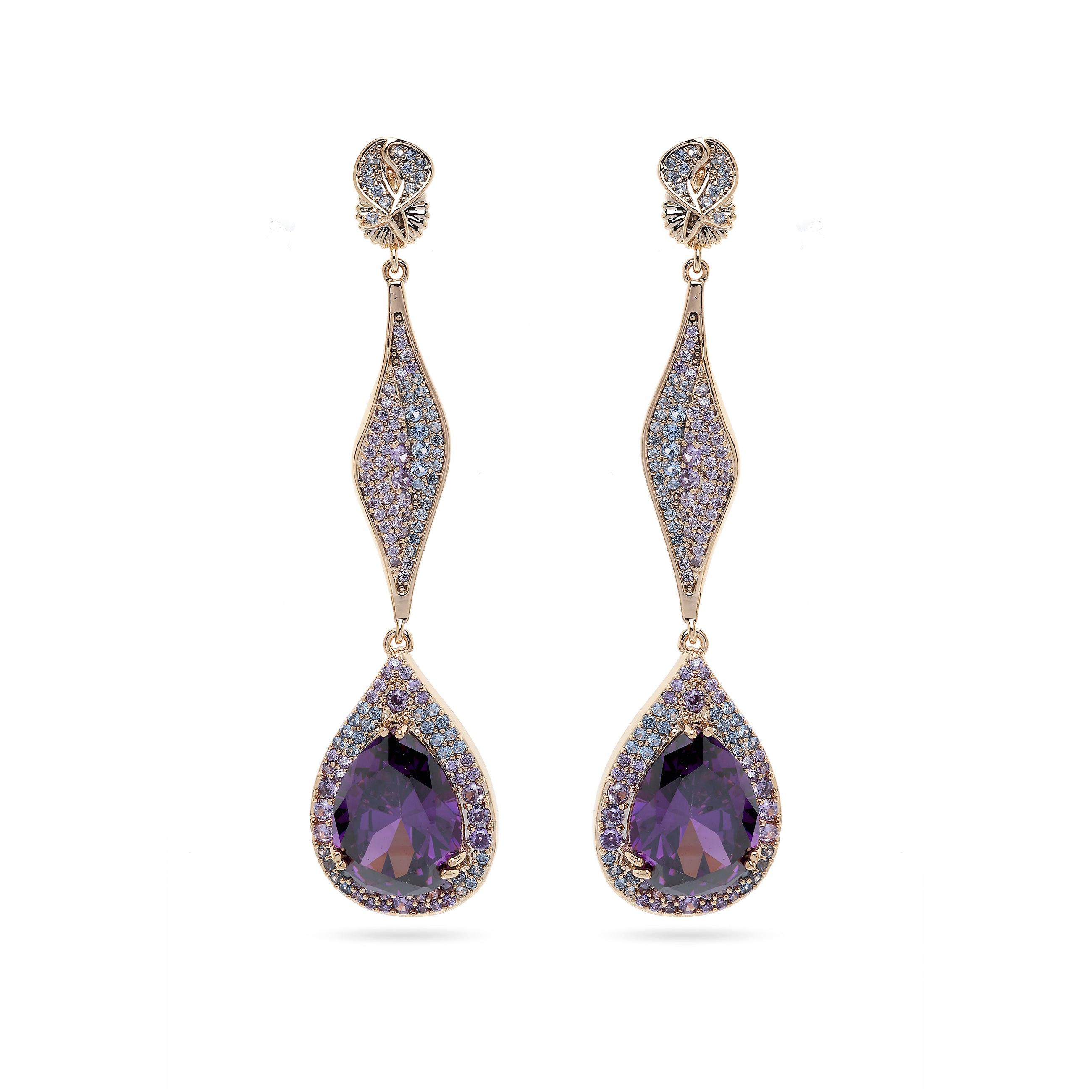 Ein markantes geometrisches Design, besetzt mit funkelnden Steinen. Die übereinander angeordneten Dreiecksformen setzen ein elegantes und zugleich ausdrucksstarkes Statement und verleihen jedem Outfit einen Hauch von Glamour! Größe: 1,7 cm x 6,0 cm | Beschichtung: Vergoldet | Verschluss: Stecker und Rückseite