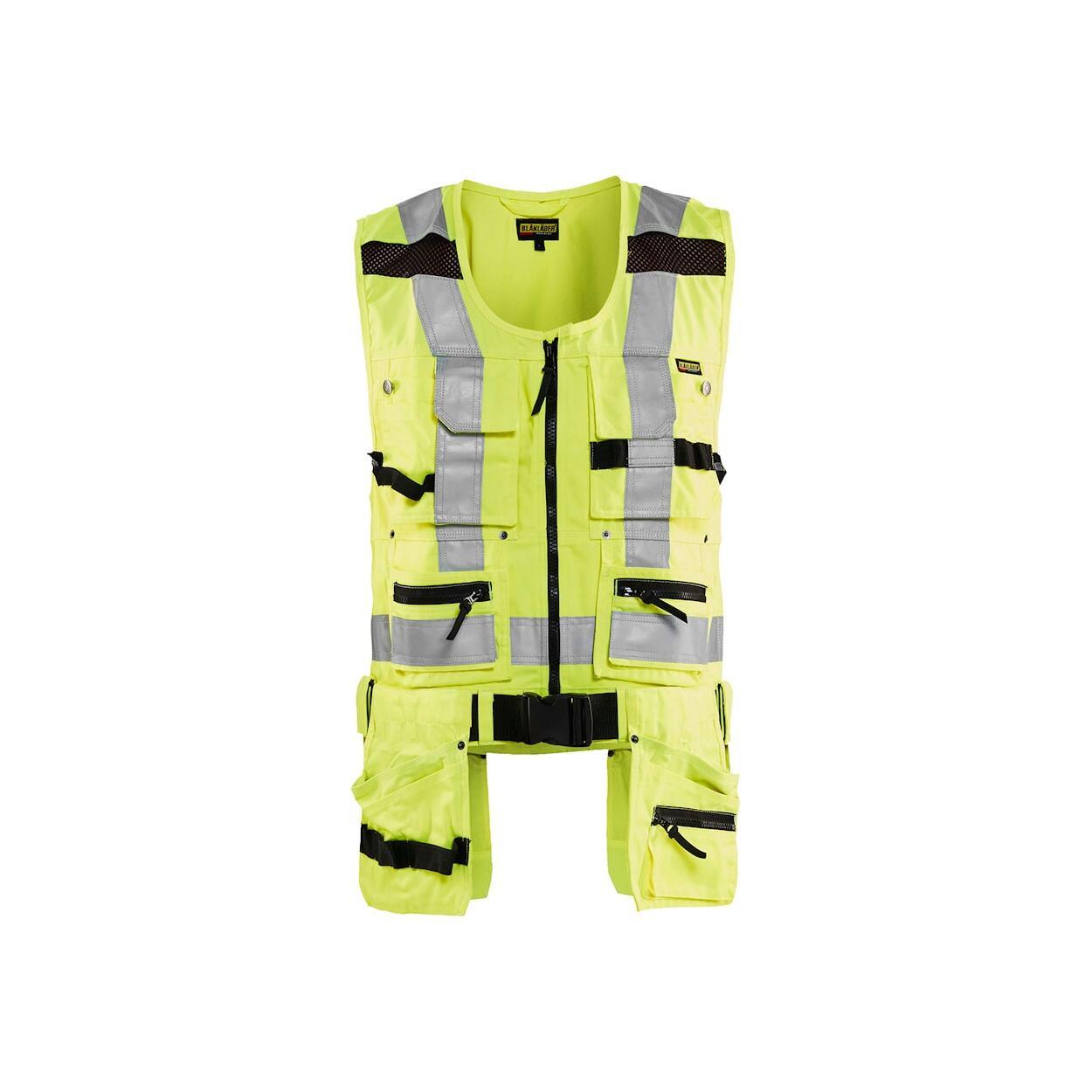 Diese moderne Arbeitsweste verfügt über viele praktische Taschen für Werkzeuge und Zubehör. Die schwebenden Taschen sind abnehmbar und die Hüftgurte reduzieren das Gewicht, das Schultern und Hals zugefügt wird. Sie verfügt über doppelte Reißverschlüsse an der Vorderseite, um die Weite anzupassen, was eine bessere Passform und einen erhöhten Tragekomfort bietet. Die Einsätze aus Stretchmaterial machen die Weste leicht und bieten eine gute Belüftung. Zertifiziert nach EN ISO 20471, S Klasse 1, M-4XL Klasse 2.
