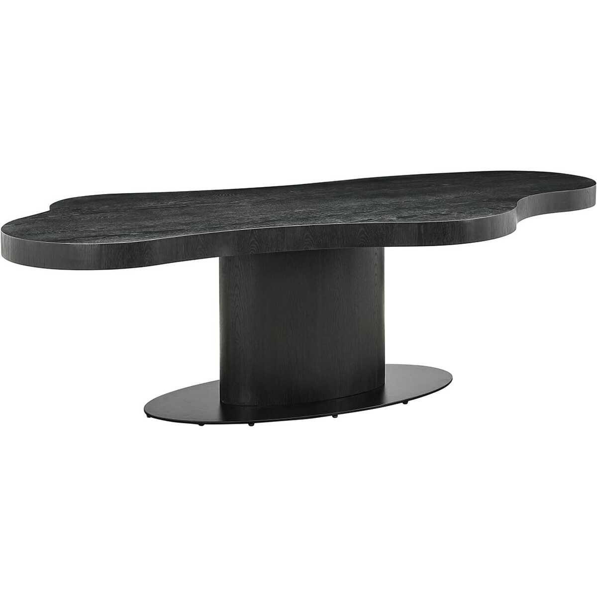 "Bogor Esstisch: Eleganz trifft auf Funktionalität. Dieser aus hochwertigem Eichenfurnier gefertigte Tisch in Dark Coffee Farbton bereichert jeden Essbereich durch seine klare Linienführung und ausdrucksstarke Optik."