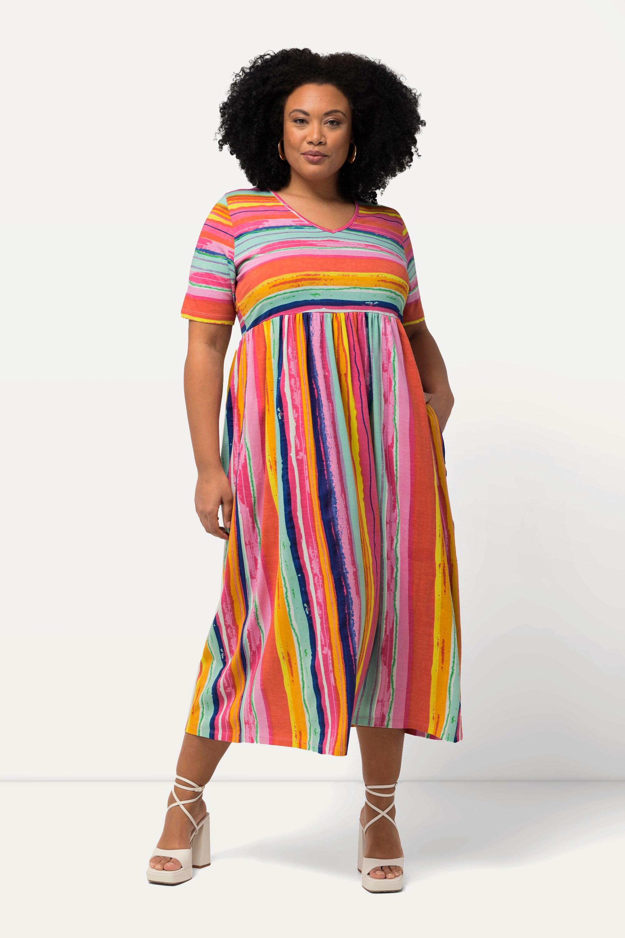 Ulla Popken Jerseykleid Streifenmix A-Linie V-Ausschnitt Halbarm
