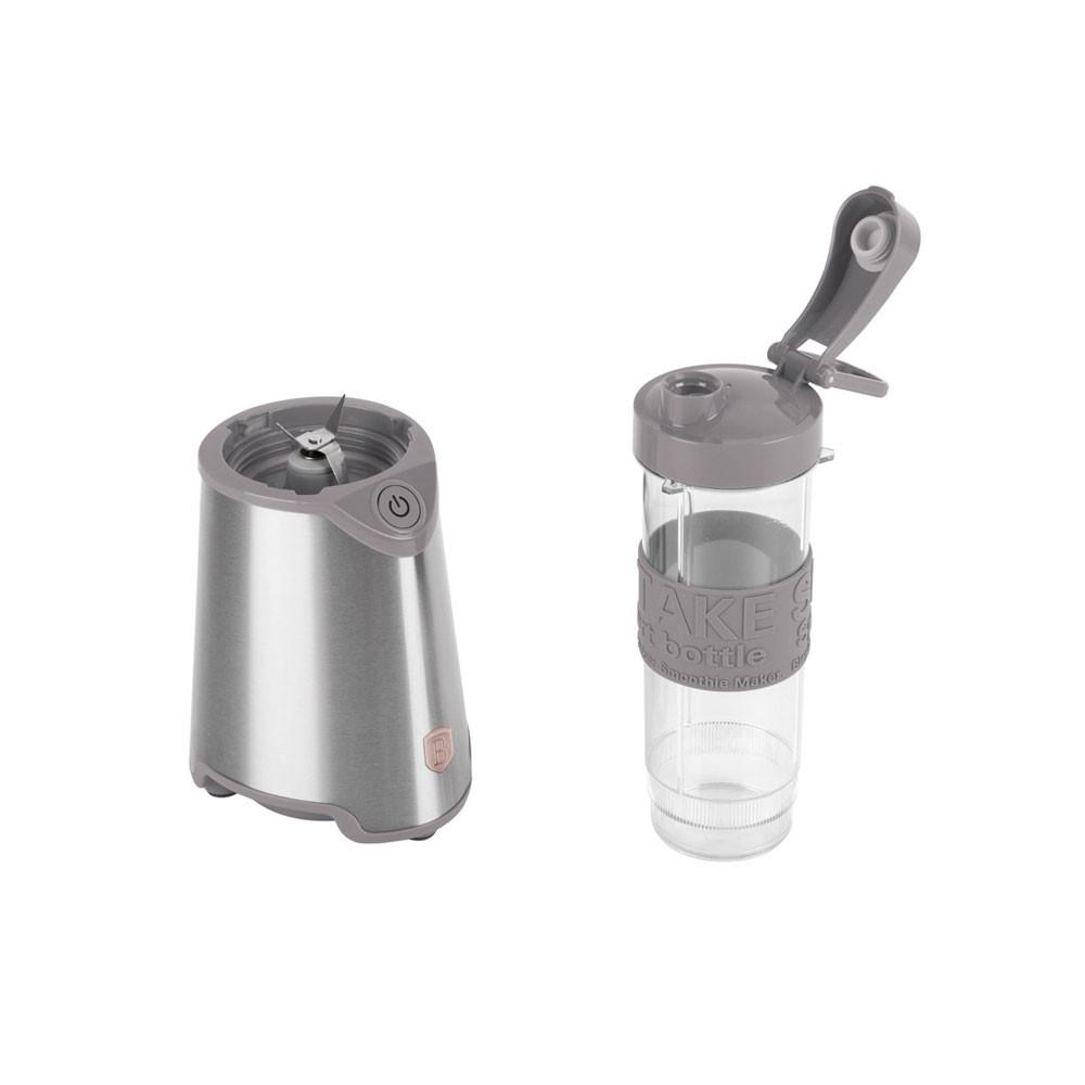 Erlebe den Berlinger Haus Smoothie Maker aus der exklusiven matt Taupe Collection, der Stil und Leistung perfekt vereint. Mit seiner leistungsstarken 300 W Motorleistung und einem grosszügigen abnehmbaren Behälter von 570 ml ist er ideal für die Zubereitung deiner Lieblingsgetränke., , Das elegante Design aus rostfreiem Stahl und mattem Taupe fügt sich nahtlos in jede moderne Küche ein und setzt stilvolle Akzente. Die spezielle Eiszerkleinerungsfunktion des hochwertigen Edelstahlmessers ermöglicht es dir, auch härtere Zutaten mühelos zu verarbeiten., , Die praktische Ein/Aus-Taste gewährleistet eine einfache Bedienung, während die mitgelieferte Sportflasche mit Verbrühschutz und rutschfestem Silikongriff sicheres Handling sowohl zu Hause als auch unterwegs bietet., , Produktinformation, - Material: rostfreier Stahl, Kunststoff, - Leistung: 300 W, - 220-240 V 50/60 Hz, - Abnehmbarer Behälter mit Deckel: 570 ml, - Farbe: rostfreier Stahl / matt Taupe, - Stab aus rostfreiem Stahl und Messer aus mit Eiszerkleinerungsfunktion, - Ein/Aus-Taste, - Sportflasche mit Verbrühschutz und rutschfestem Silikongriff