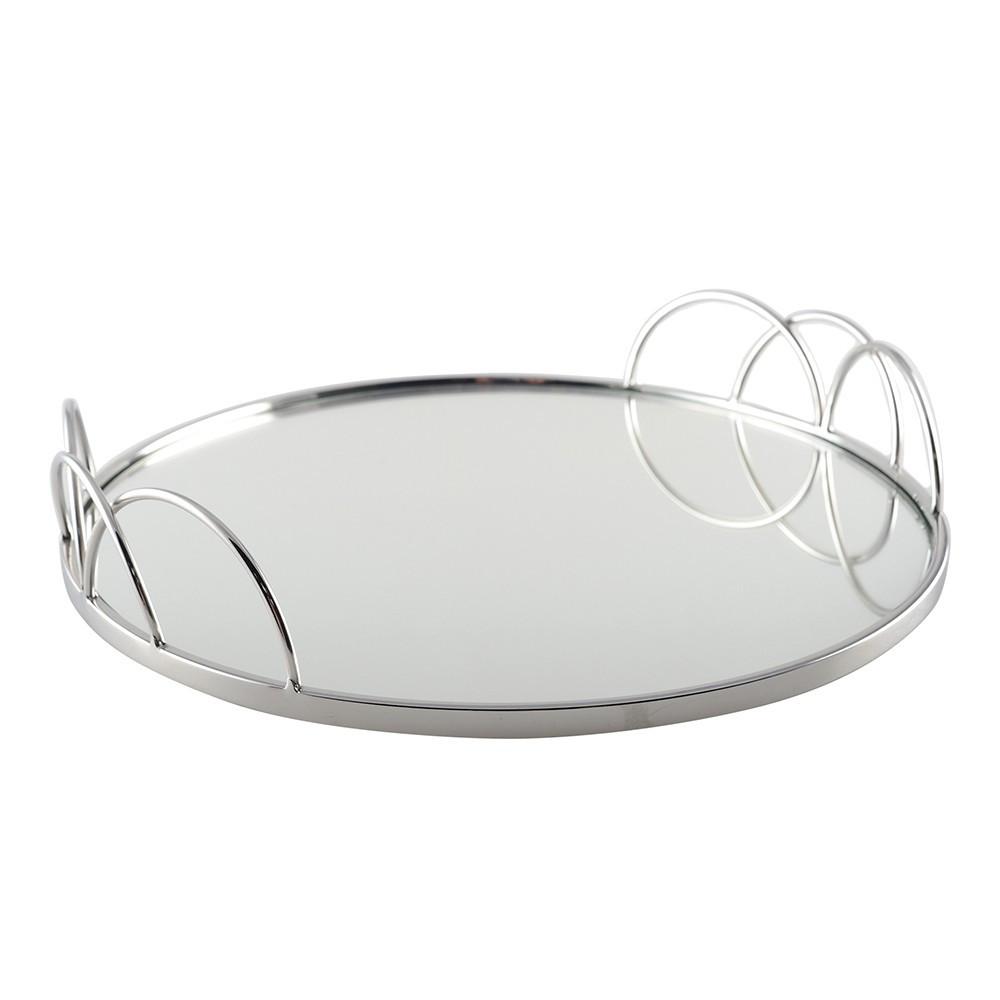Rundes Spiegeltablett, silberfarben, 33x33x5.5cm