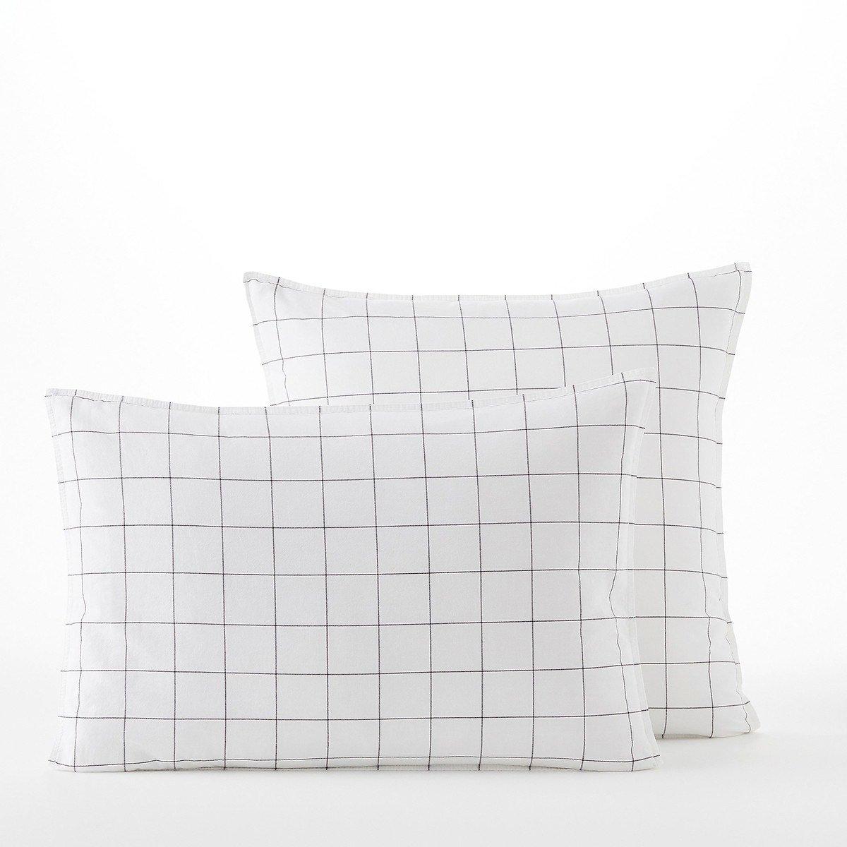 Der Kissenbezug Ponlok ist aus Bio-Baumwolle gefertigt. Er verfügt über ein zeitloses und schlichtes Design mit verschiedenen Seiten: eine mit grossen Karos und die andere unifarben.