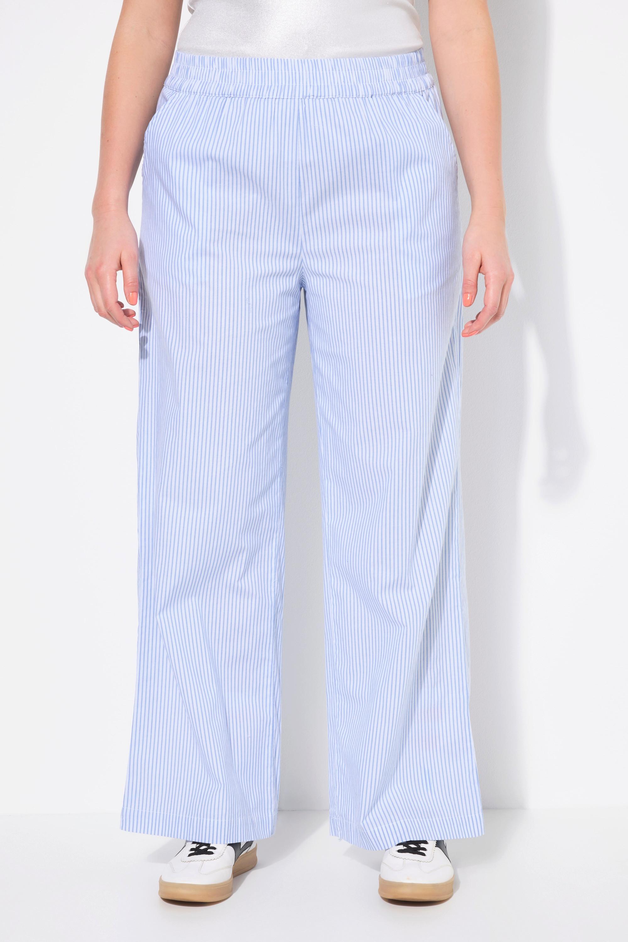 Diese Schlupfhose verfügt über ein weites Bein und ein klassisches Streifenmuster, das eine bequeme und dennoch stilvolle Option für verschiedene Anlässe bietet. Der elastische Bund sorgt für einen sicheren und bequemen Sitz.