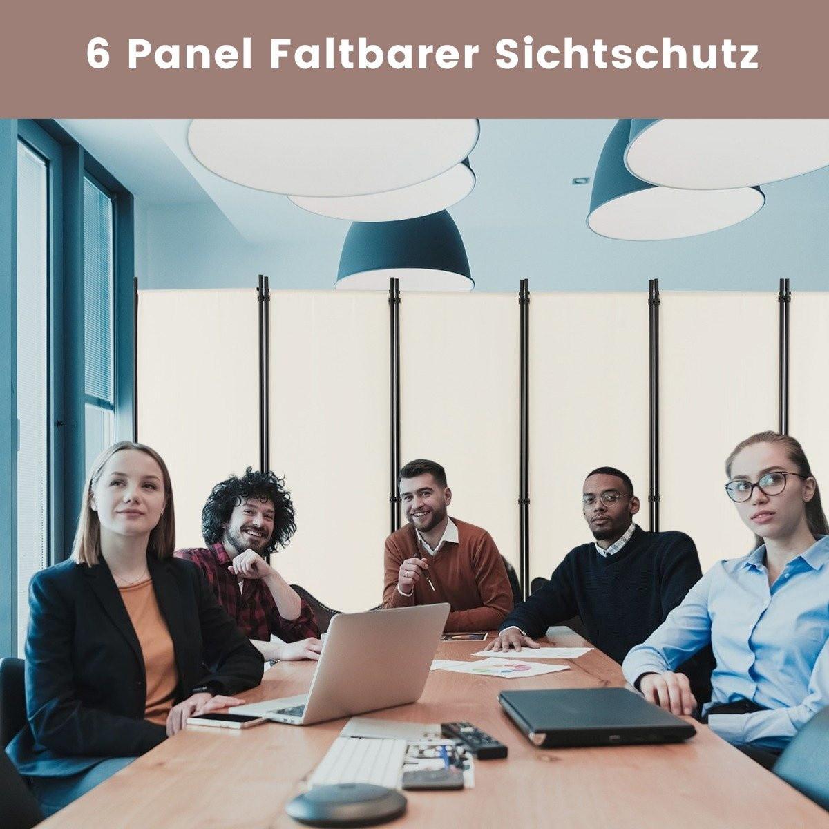 B2X 6-Teiliger Faltbarer Raumteiler 172 cm Hoher Sichtschutz mit Feststellbaren Rädern Beige