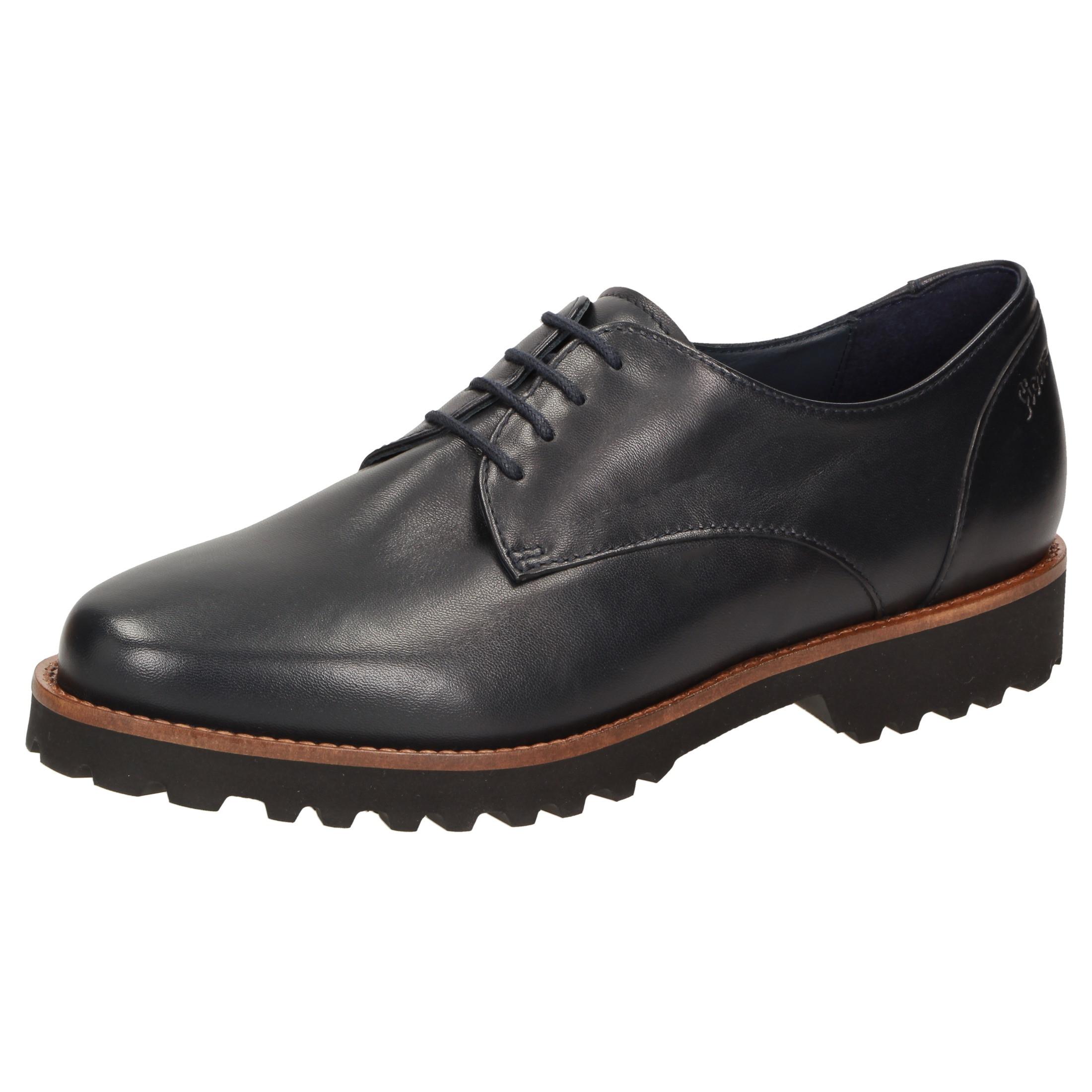 Sehr bequemer Damenschnürschuh von Sioux im Boyfriend-Style aus sehr weichem Lammnappa-Leder in H-Weite. Gefüttert mit Kalbleder und einem Stretch-Textilfutter im Vorfußbereich. Für Hallux-Valgus-Füße geeignet! Herausnehmbare, kalblederbezogene Decksohle mit weicher Dämpfung - auch geeignet zum Austausch mit der eigenen Einlage. Profilierte Leichtgummisohle mit markantem Lederrahmen.