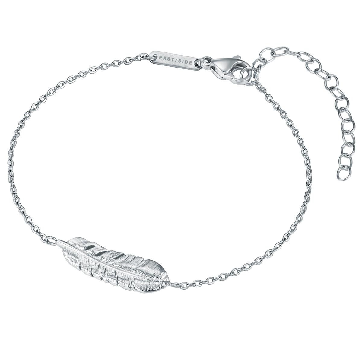 Ehre, Stärke, Freiheit und Weisheit: In der indianischen Mythologie ist die Feder eines der mächtigsten Symbole. Wer diesen Talisman als Accessoire bei sich tragen will, wird sich im Nu in dieses hübsche Armband des Labels Eastside verlieben! Der fein ziselierte Feder-Anhänger am filigranen Ankerkettchen passt (nicht nur) perfekt zum angesagten Boho- und Vintage-Style. Sowohl Anhänger als auch Armkettchen sind aus robustem Edelstahl gefertigt. Dank eines Verlängerungsstücks mit Karabinerverschluss lässt sich die Kette schnell und einfach an das Handgelenk anpassen. Ein vielseitiger Alltagsbegleiter und garantiert ein Hingucker!