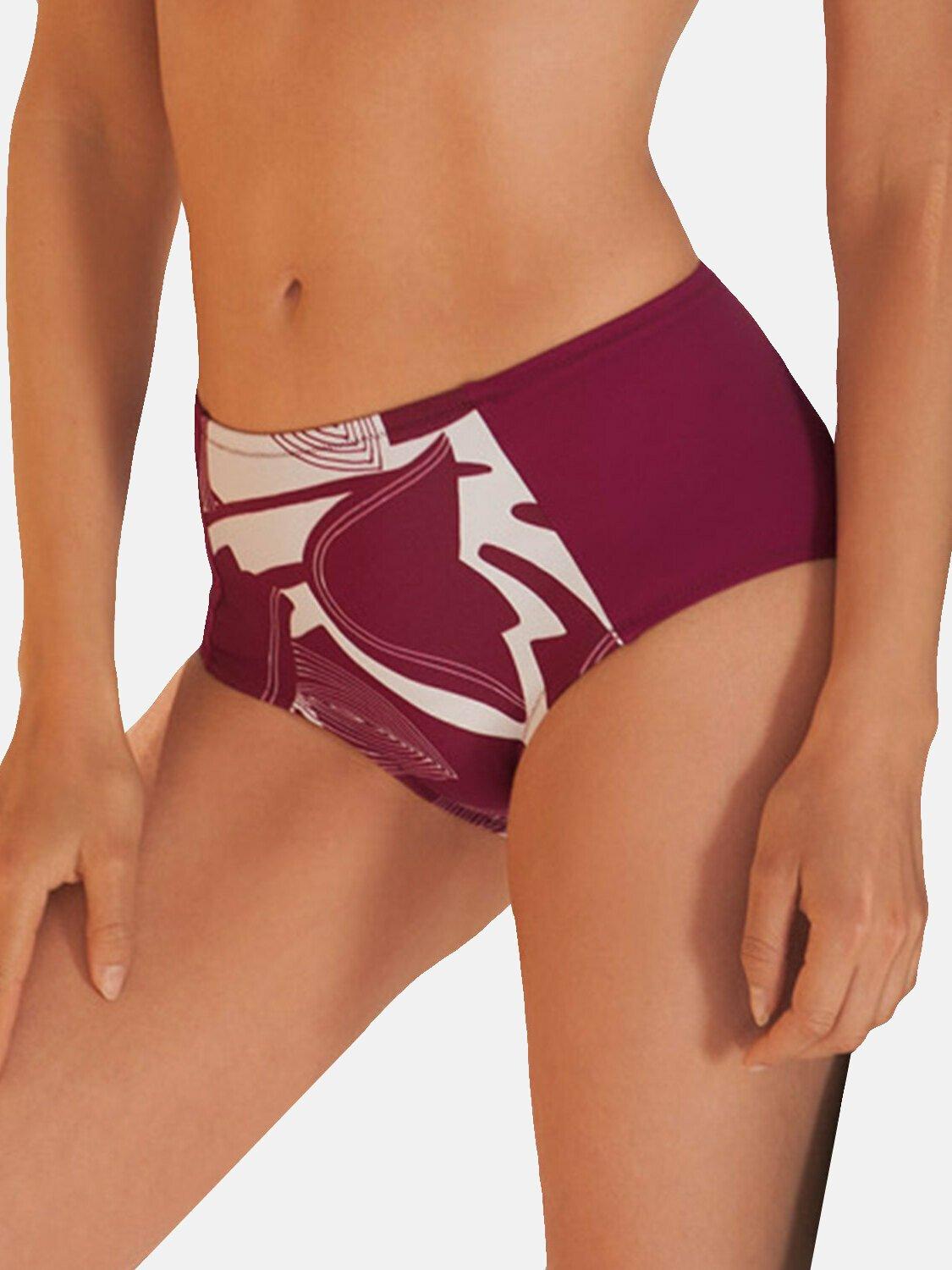 Die hochgeschnittene Karpathos Bikini-Hose von Lisca wurde entwickelt, um den Körper zu umschliessen und zu formen. Sie verfügt über einen weissen und bordeauxroten Aufdruck und ist ca. 28 cm hoch. Hergestellt aus dem neuen Vita-Material, bietet sie eine erhöhte Beständigkeit gegen Chlor, Sonnencremes und Öle und schützt zudem vor UV-Strahlen.