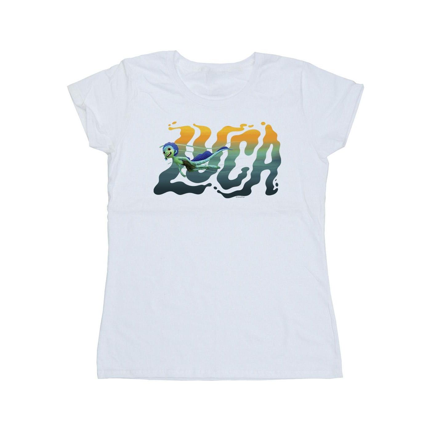 Dieses Luca Swim T-Shirt zeigt einen lebendigen Grafikdruck, inspiriert vom Animationsfilm. Das Design präsentiert Luca in seiner Seemonsterform, schwimmend neben dem Filmtitel, dargestellt in einem dynamischen, wasserähnlichen Effekt mit einem Farbverlauf von warmen und kühlen Tönen.