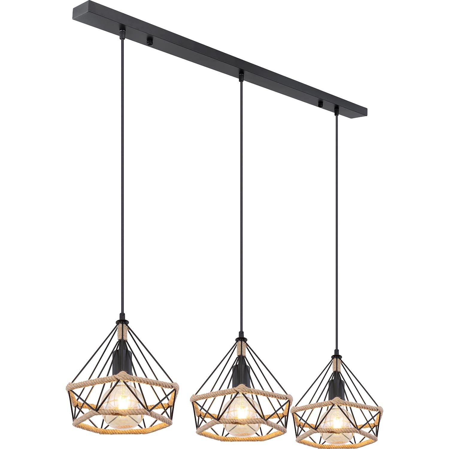 Diese Hängelampe aus der Ulleu-Serie fügt sich dank ihres eleganten Designs aus schwarz-mattem Metall wunderbar in das Ambiente verschiedenster Wohnstile. Die 1000 cm lange Hängeleuchte besteht aus drei Metallgitterschirmen, die mit braunem Hanfseil umwickelt sind und deren Höhe Sie mithilfe der schwarzen Kabel auf bis zu 120 cm angepasst werden kann. Darüber hinaus können Sie die Schirme mit E27-Leuchtmitteln Ihrer Wahl bestücken, wodurch Sie die Möglichkeit haben, Lichtfarbe und Helligkeit individuell zu bestimmen. Durch mehrere Artikel der gleichen Serie können Sie in Ihren Innenräumen stilvolle Akzente setzen und das Gesamtbild komplettieren.