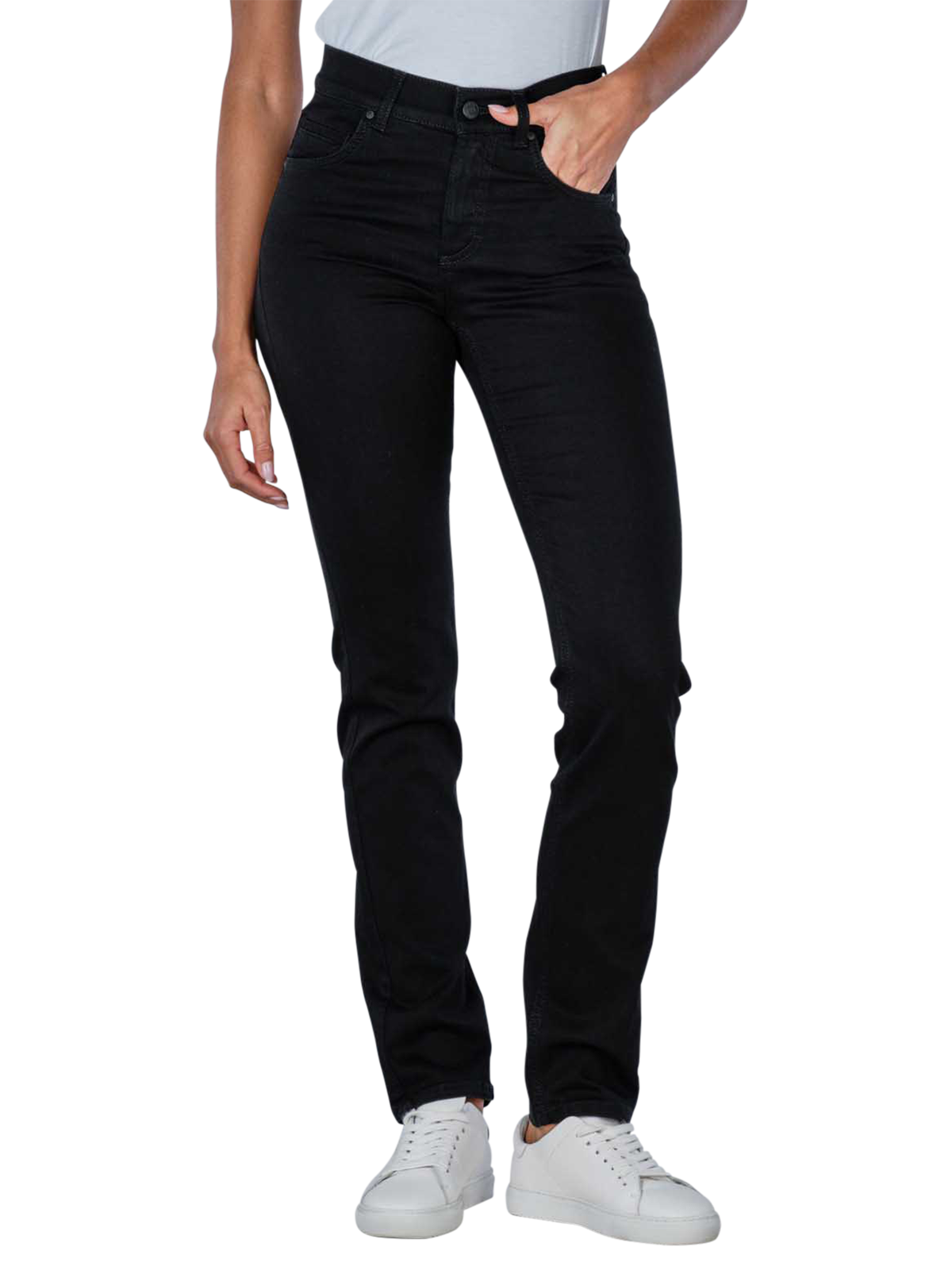 Die Angels Damenjeans Cici in der klassischen Farbe Black hat die Passform Slim Fit mit geradem Beinausschnitt und Oberschenkel. Der Bund des Modells ist hoch geschnitten. Pflegeleicht und bequem ist die Jeans aus 92 % Baumwolle, 6 % Polyester und 2 % formgebendem Elasthan. Schliessen lässt sich die Five-Pocket-Hose mit Reissverschluss und Knopf. Wasser, Energie, natürliche Ressourcen und CO2 können dank dem Knotwashed-Verfahren mit recycelten Kunststoff-knots eingespart werden.