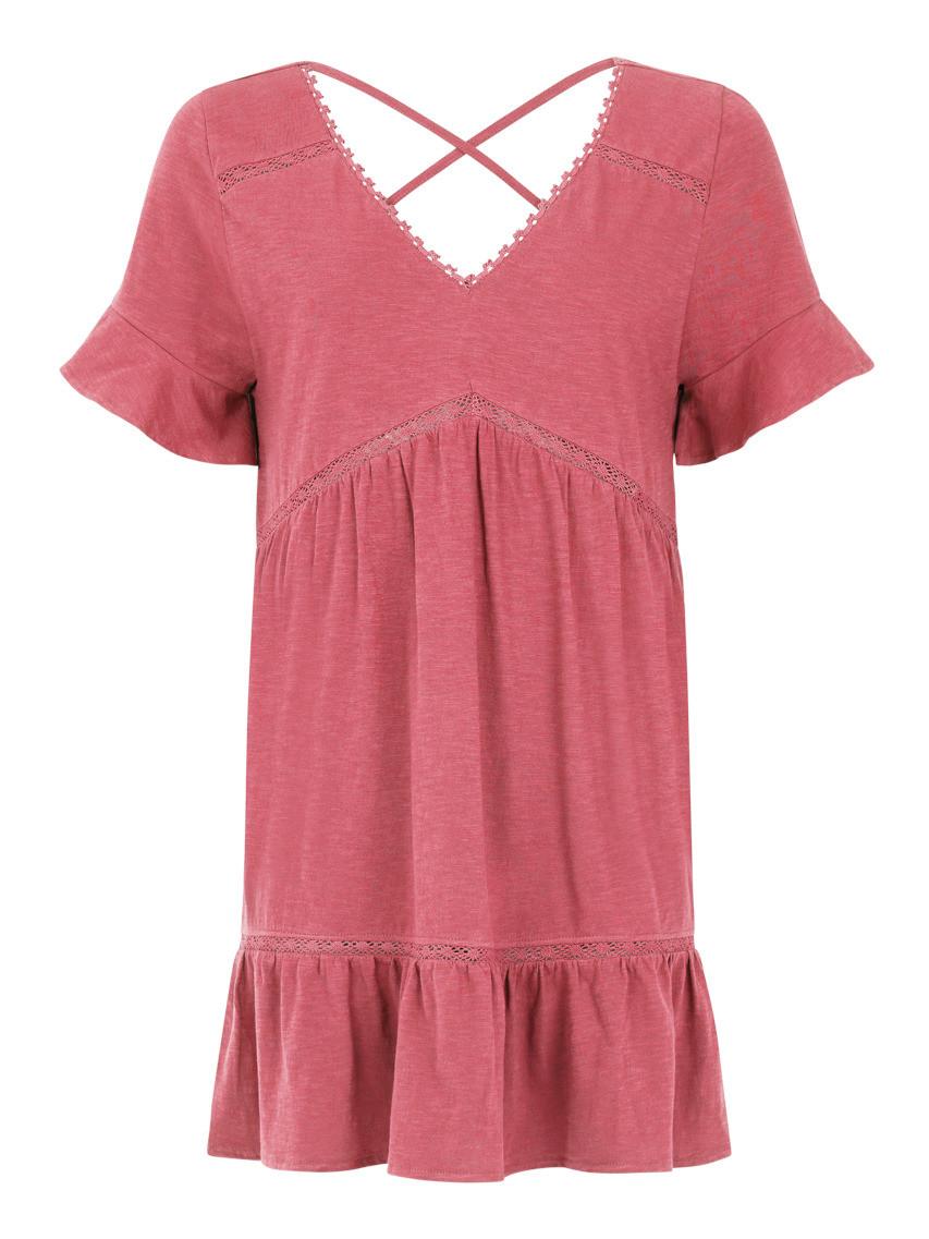 Erlebe die luftig-sommerliche Eleganz der PRTTHIRZA von Protest. Diese oberschenkellange Tunika hat eine weite Passform und ist perfekt für die warmen Tage des Jahres. Die kurzen Ärmel, der V-Ausschnitt und die subtilen Stickdetails verleihen deinem Look einen Hauch von Eleganz. Die Träger verlaufen im Rücken über Kreuz und ergänzen den klassischen Schnitt dieser Tunika um eine modische Note. Egal ob du einen Strandspaziergang machst oder unter freiem Himmel dein Abendessen geniesst ? diese Tunika kombiniert Komfort und Modebewusstsein zu einem attraktiven, sommerlichen Statement.
