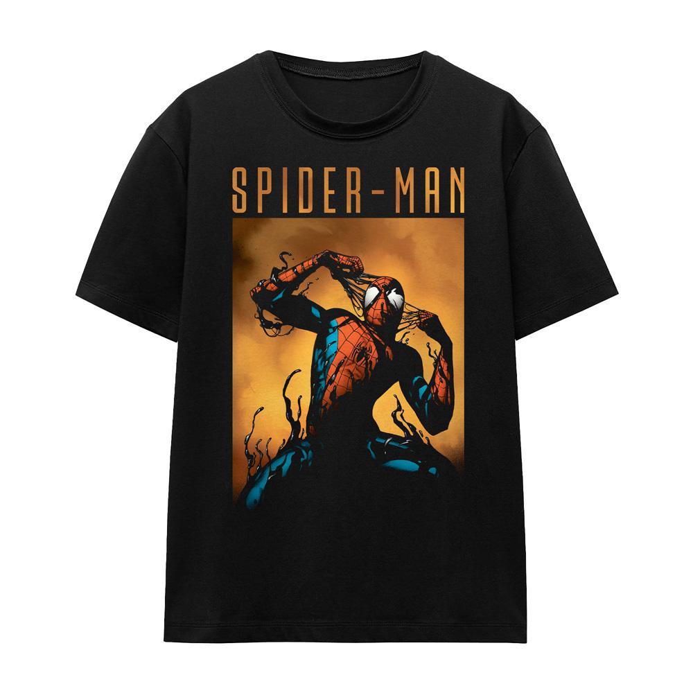 Dieses T-Shirt zeigt einen auffälligen Grafikdruck von Spider-Man im Kampf gegen den schleichenden Venom. Das Design fängt einen dynamischen Moment ein und macht es zu einem herausragenden Stück für Fans.