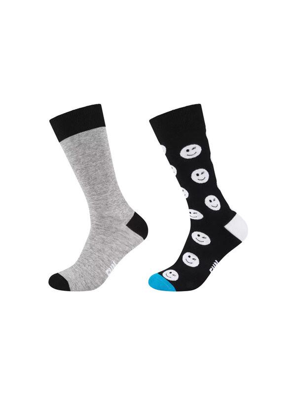Diese Socken verfügen über ein verspieltes Smiley-Motiv, das jedem Outfit eine fröhliche Note verleiht. Das Set enthält ein Paar mit Smiley-Motiv und ein unifarbenes Paar.