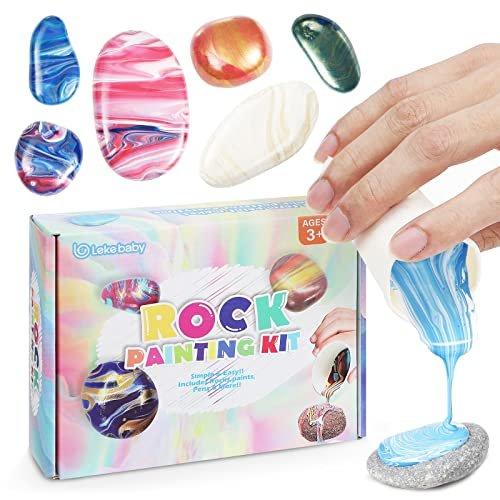 Komplettes Steinmalerei-Set: Das Steinmalerei-Set enthält 4 vorgemischte Acrylfarben (60 ml), 8 glatte Steine in verschiedenen Formen und Größen, 4 Rührstäbchen, 1 Gebrauchsanweisung (englische Sprache nicht garantiert), 2 Einweghandschuhe, 6 Wiederholungsaufkleber, 4 Pappbecher, 4 Papierblöcke, perfekt für Kinder und Anfänger, um erstaunliche und schillernde abstrakte Kunstfelsen zu schaffen. Lustige DIY-Aktivitäten: Sind Sie auf der Suche nach einer lustigen Art, Ihre Kinder zu unterhalten, ohne vor dem Bildschirm zu sitzen? Probieren Sie eine neue Art des Malens aus und beobachten Sie, wie sich die Farbe verwirbelt und vermischt, malen Sie Steine an, während Sie sie über die Felsen schütten, und schaffen Sie so interessante Marmormuster. Außerdem fördert es die Hand-Augen-Koordination und die Feinmotorik der Kinder. * Sichere Kindersteine zum Malen: Lekebaby abwaschbare Farben sind kindersicher, die Pigmente sind nicht wasserfest, sie fallen natürlich im Wasser ab, so dass sie leicht von der Haut und anderen Oberflächen wie Steinen und Tassen mit Wasser abgewaschen werden können. Nachdem der Stein trocken ist (24 Stunden), befeuchten Sie den Aufkleber, um den Stein zu dekorieren.