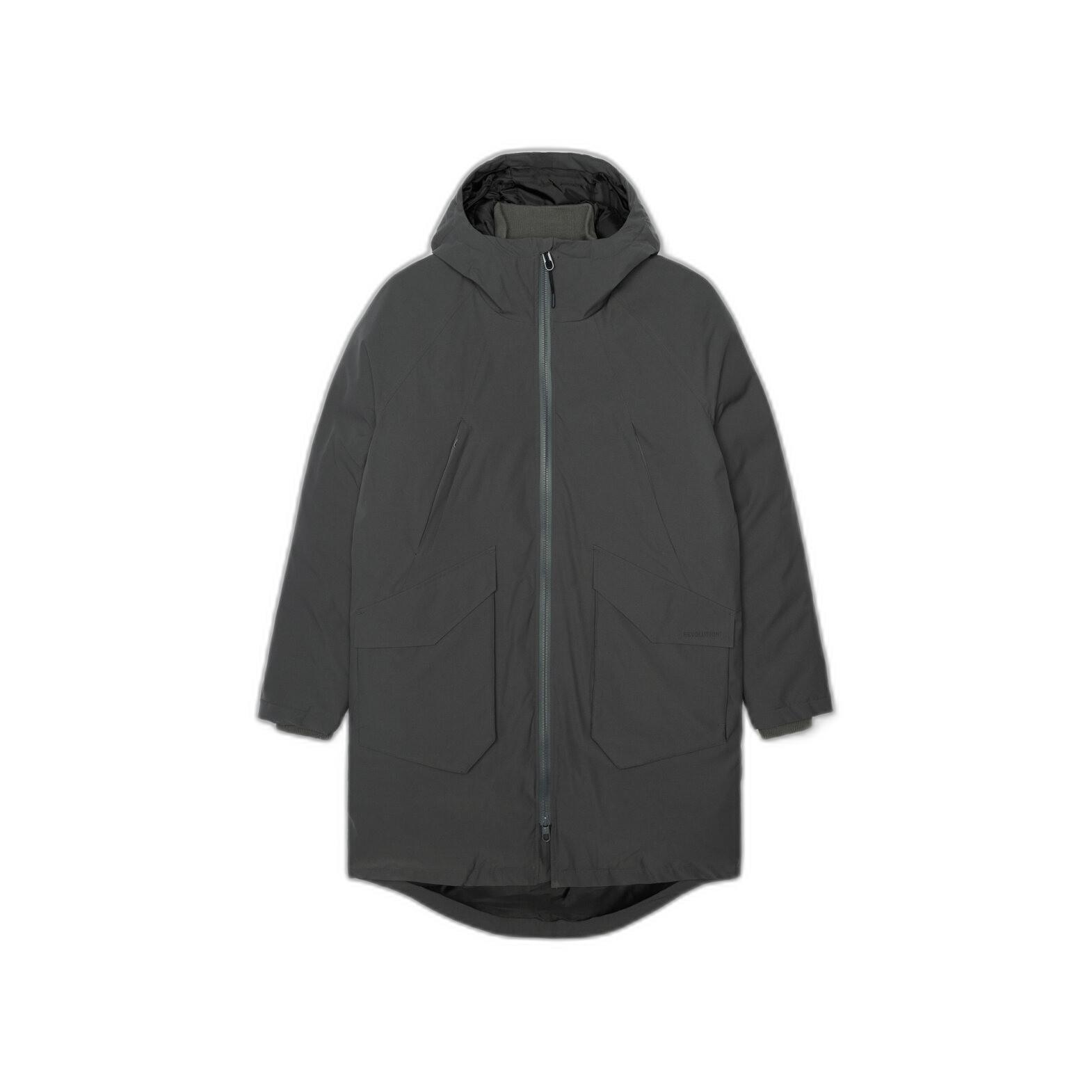 Dieser lange technische Raglan-Parka ist aus einem leichten, dehnbaren Material gefertigt und bietet sowohl Wärme als auch Komfort. Er verfügt über eine Kapuze mit Rippbündchen und einen Zwei-Wege-Frontreissverschluss für vielseitiges Tragen.