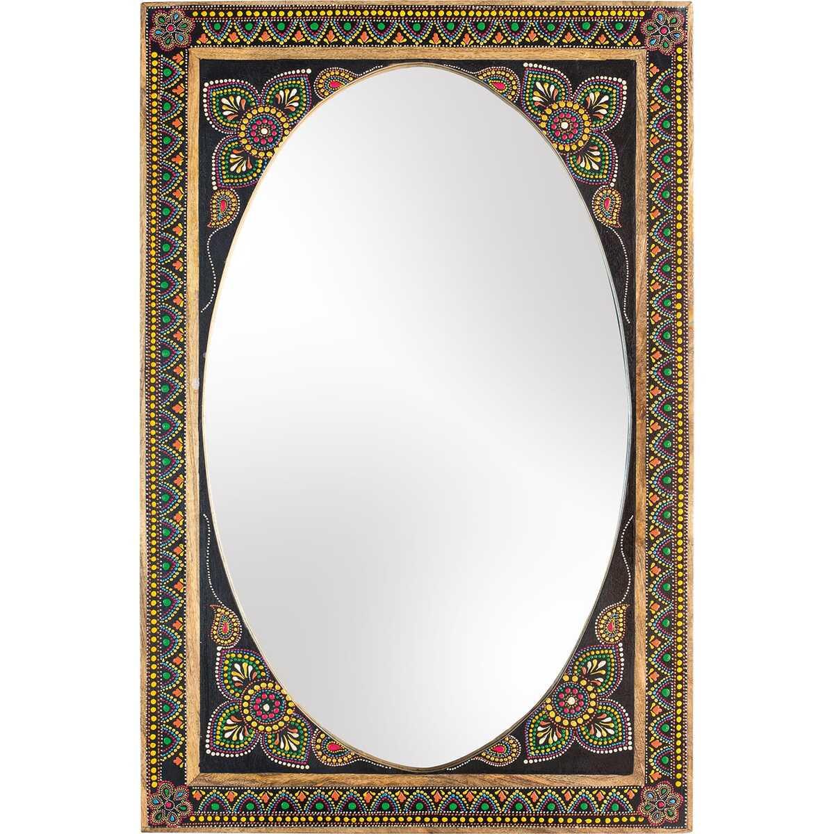 Der Wandspiegel aus Mangoholz ist nicht nur ein einfacher Spiegel, sondern auch ein künstlerisches Meisterwerk mit handbemalten Details. Ob horizontal oder vertikal aufgehängt, er verleiht jedem Raum das gewisse Etwas.