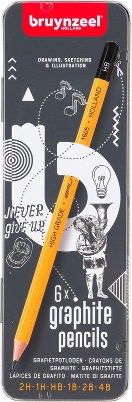 Bruynzeel BRUYNZEEL Grafitbleistifte Burotek, Metalletui 6 Stück