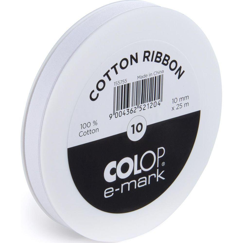 Breite: 10 mm, Länge: 25 m, Verpackungseinheit: 1 Stück, Detailfarbe: Weiss, Band-Art: TextilbandBaumwollband zum Erstellen von tollen GeschenkideenIdeal für das Bedrucken mit COLOP e-markLänge: 25 mBreite: 10 mmOhne Führungsschiene