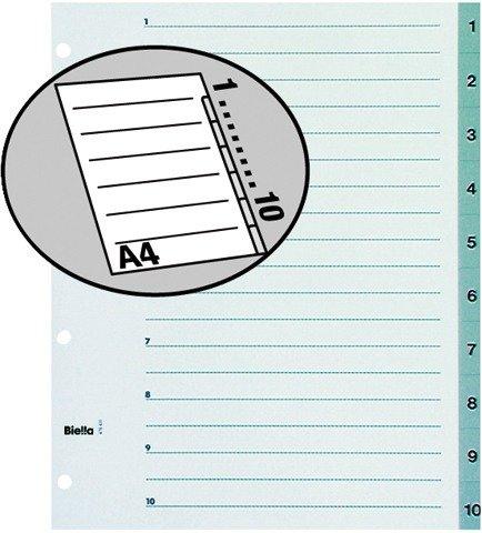 Zeigetaschen-Register Ordnen Sie Ihre Unterlagen schnell und effizient mit den praktischen Registern von Biella. Die nummerierten Taben ermöglichen ein schnelles Auffinden Ihrer Dokumente. Das überbreite Format ermöglicht ebenfalls die Anwendung mit Zeigetaschen in Ring- oder Zeigebüchern. überbreite Register Universallochung passend für Zeigetaschen