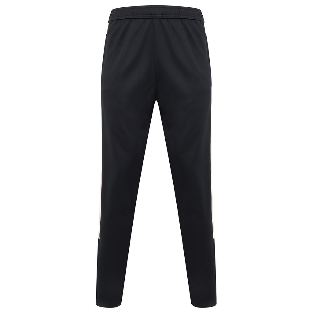 Schlankes Bein. Elastischer Bund mit innerem Kordelzug. Zwei seitliche Reißverschlusstaschen. Kontrast Seiten-Panel. Knöchel Reißverschluss mit Zip-Blende und Schlitten-Lock. Handwäsche. Material: 95% Polyester, 5% Elastan.