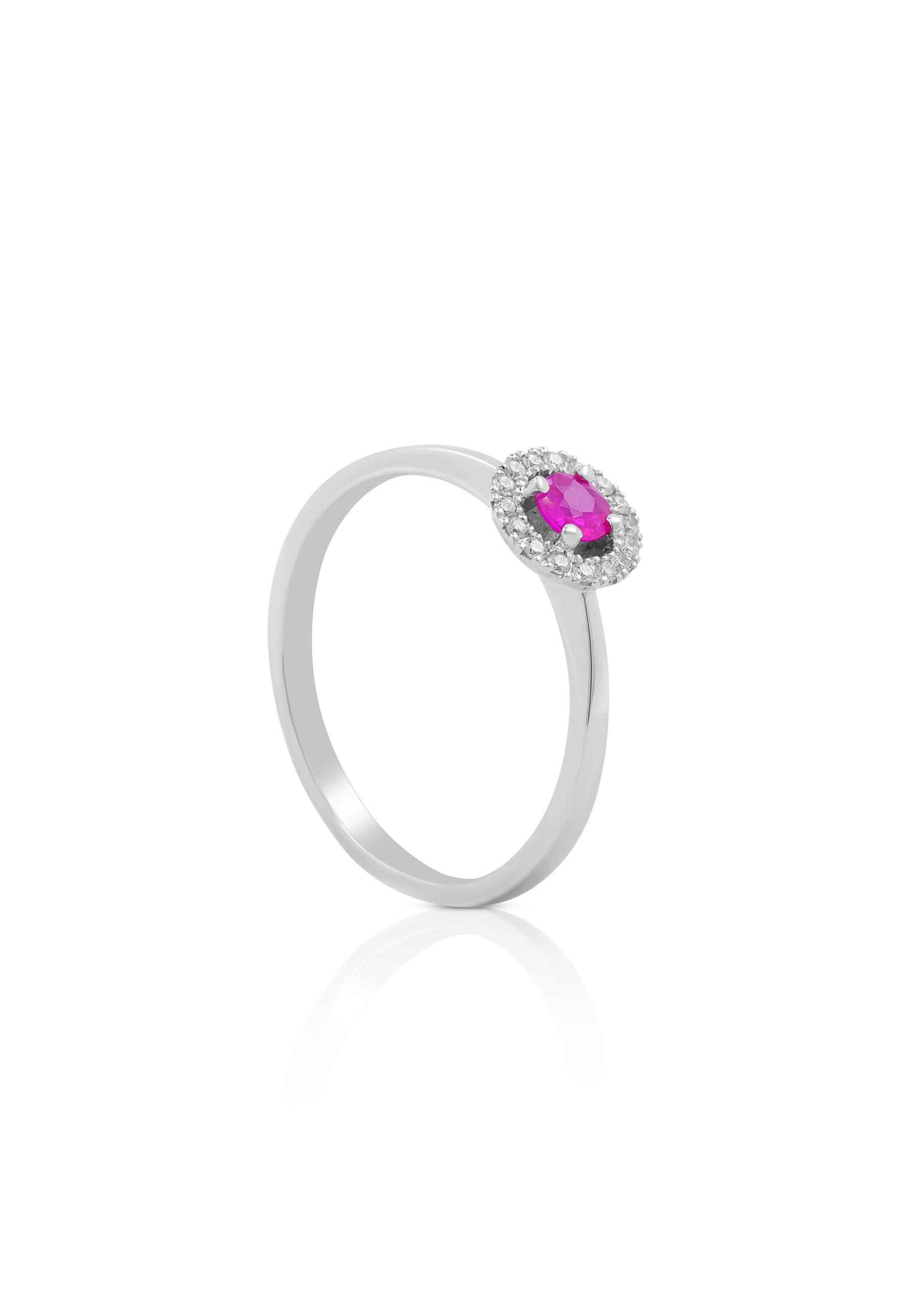 MUAU Schmuck, Ring Weissgold 750 Diamant 0.096ct. Rubin 0.26ct.
