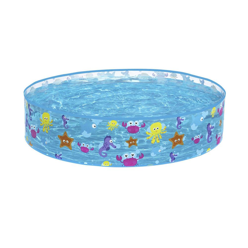 Produktinformationen, , Grösse: Ø 122 x 25 cm, Wasserkapazität: 277 Liter, Geeignet ab 2 Jahren, Strapazierfähige und stabile Wände aus PVC, Robuster und fest verbundener PVC-Boden, Kein Aufblasen notwendig, Inklusive Reparaturflicken, Farbe: blau mit Meerestieren