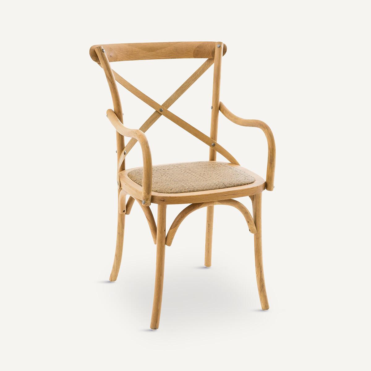 Armlehnstuhl Humphrey. Die elegant geschwungene Rückenlehne mit überkreuzten Streben und die gepolsterte Sitzfläche vereinen Eleganz und Komfort.
