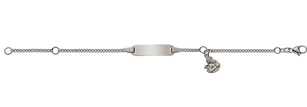 MUAU Schmuck Bébé Bracelet Panzer Weissgold 750, 14cm Gravurplatte 2cm Engel Anhänger