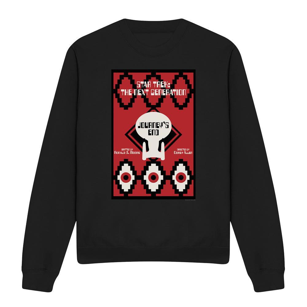 Dieses Sweatshirt zeigt ein einzigartiges Grafikdesign, inspiriert von "Star Trek: The Next Generation" Staffel 7 Episode 20, mit dem Titel "Journey's End". Das Design enthält ikonische Elemente aus der Serie und macht es zu einem unverwechselbaren Stück für Fans.