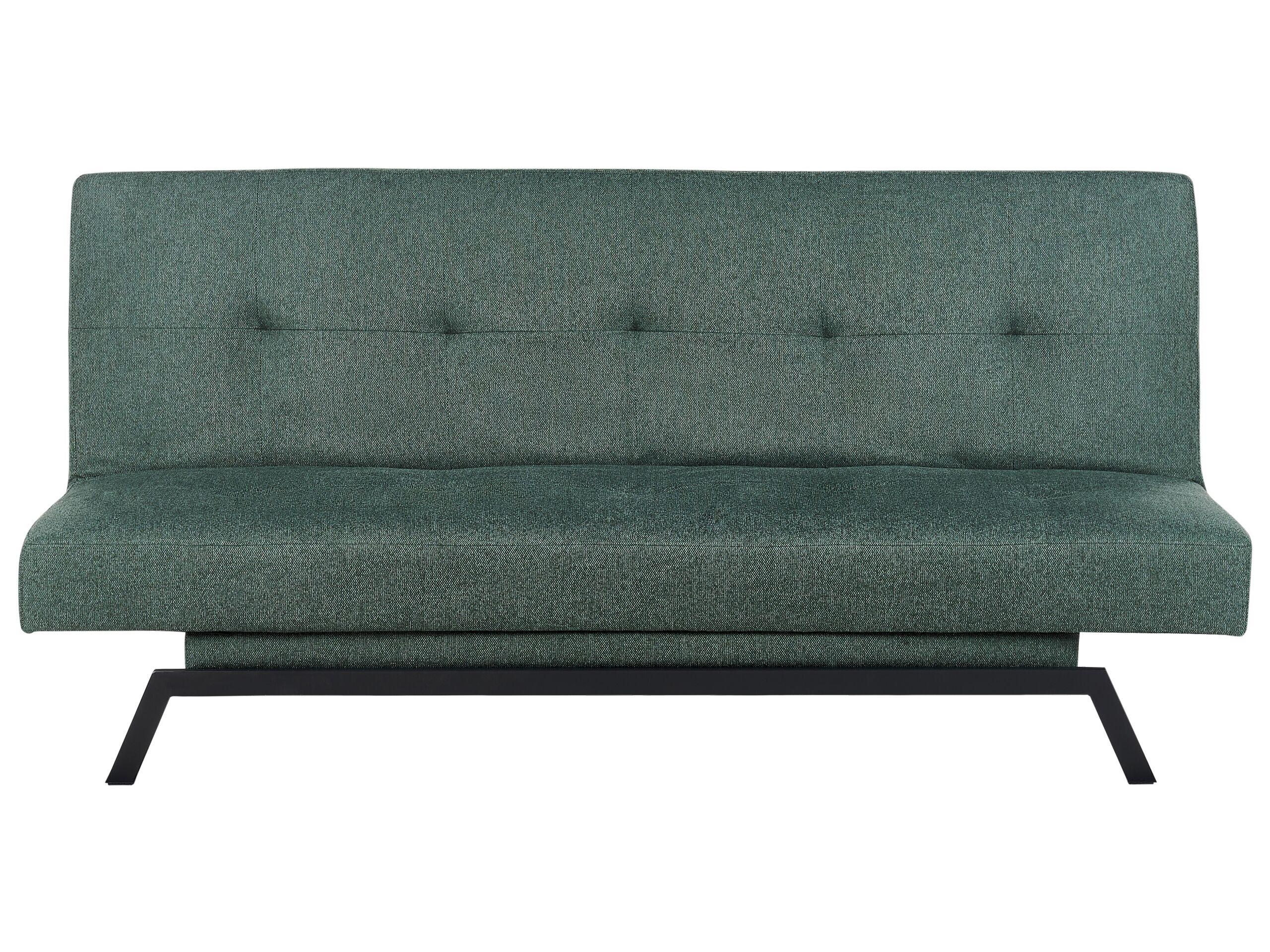 Elegantes 3-Sitzer Stoffsofa mit praktischer Schlaffunktion. Ausgefallen und stylisch das ist unser Bettsofa. Das ausgefallene Design in Grün peppt das Gesamtbild auf. Die Rückenlehne des Sofas ist leicht verstellbar und runterklappbar, so entsteht mit wenigen Handgriffen ein breites Bett, dass zu langen und gemütlichen Abenden einlädt. Die schwarzen Beine aus Metall verleihen dem Schlafsofa den idealen Halt. Egal ob Sie das Wohnzimmersofa als Couch oder als Bett verwenden, dieses Modell ist ein echtes Highlight für jede Einrichtung.