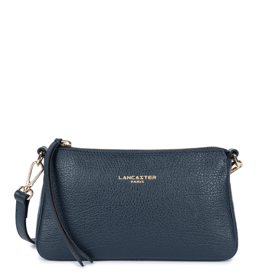 Die Dune Clutch Tasche ist ein schickes und elegantes Accessoire, perfekt für Partys, Events und das Büro. Diese Clutch ist aus marineblauem Sandnarbenleder gefertigt und verfügt über einen Verschluss sowie goldfarbene Hardware. Das "Lancaster Paris"-Logo ist in Gold auf der Vorderseite der Tasche eingraviert. Die Tasche enthält einen abnehmbaren Riemen für vielseitigen Einsatz und bietet bequemen Stauraum sowie stilvolles Styling, was die Dune Clutch zu einem perfekten Accessoire für besondere Anlässe macht.