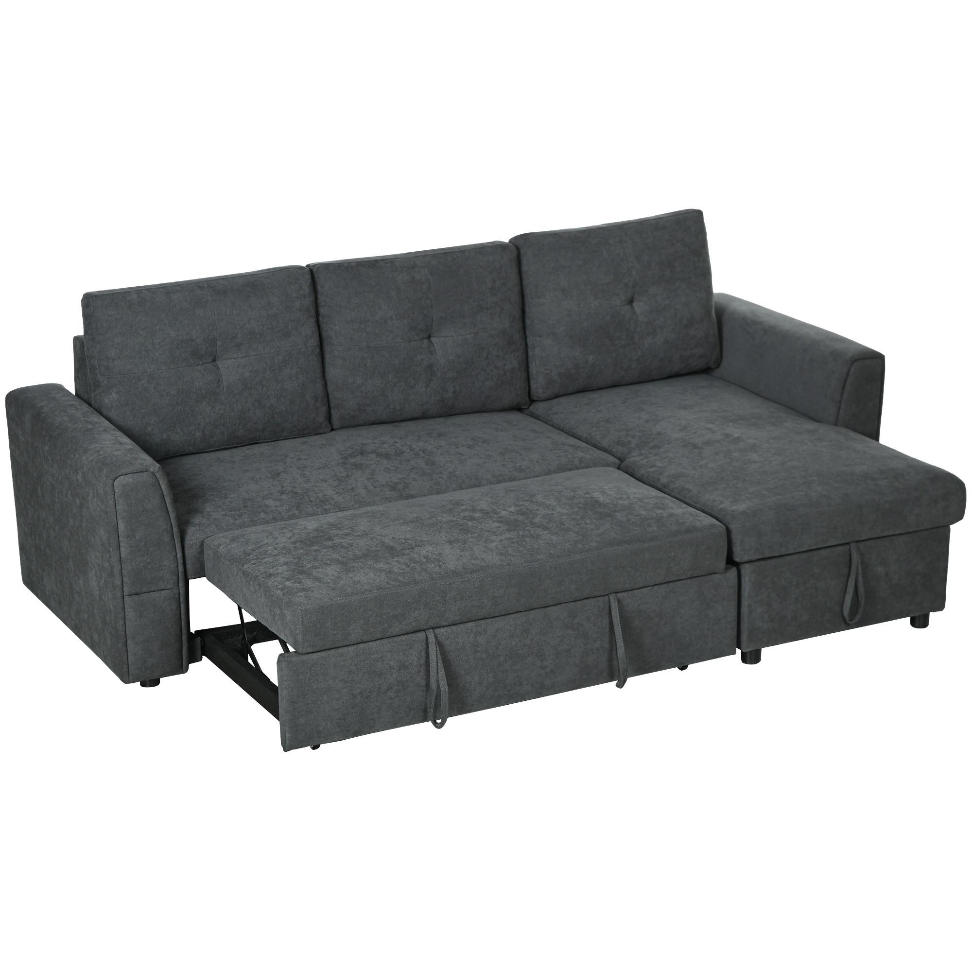 Tauchen Sie ein in Komfort und bringen Sie Stil in Ihr Zuhause mit diesem Klick-Klack-Sofabett von HOMCOM. Es ist als Dreisitzer geräumig und verfügt über ein 'L'-förmiges Eckdesign für mehr Beinfreiheit ideal zum Entspannen. Mit dickem Schaumstoff gepolstert, lässt es sich zudem in ein Liegesofabett umwandeln, um Gästen eine bequeme Schlafmöglichkeit zu bieten. Der praktische Stauraum unter dem Sitz hält Ihr Zuhause ordentlich und aufgeräumt.