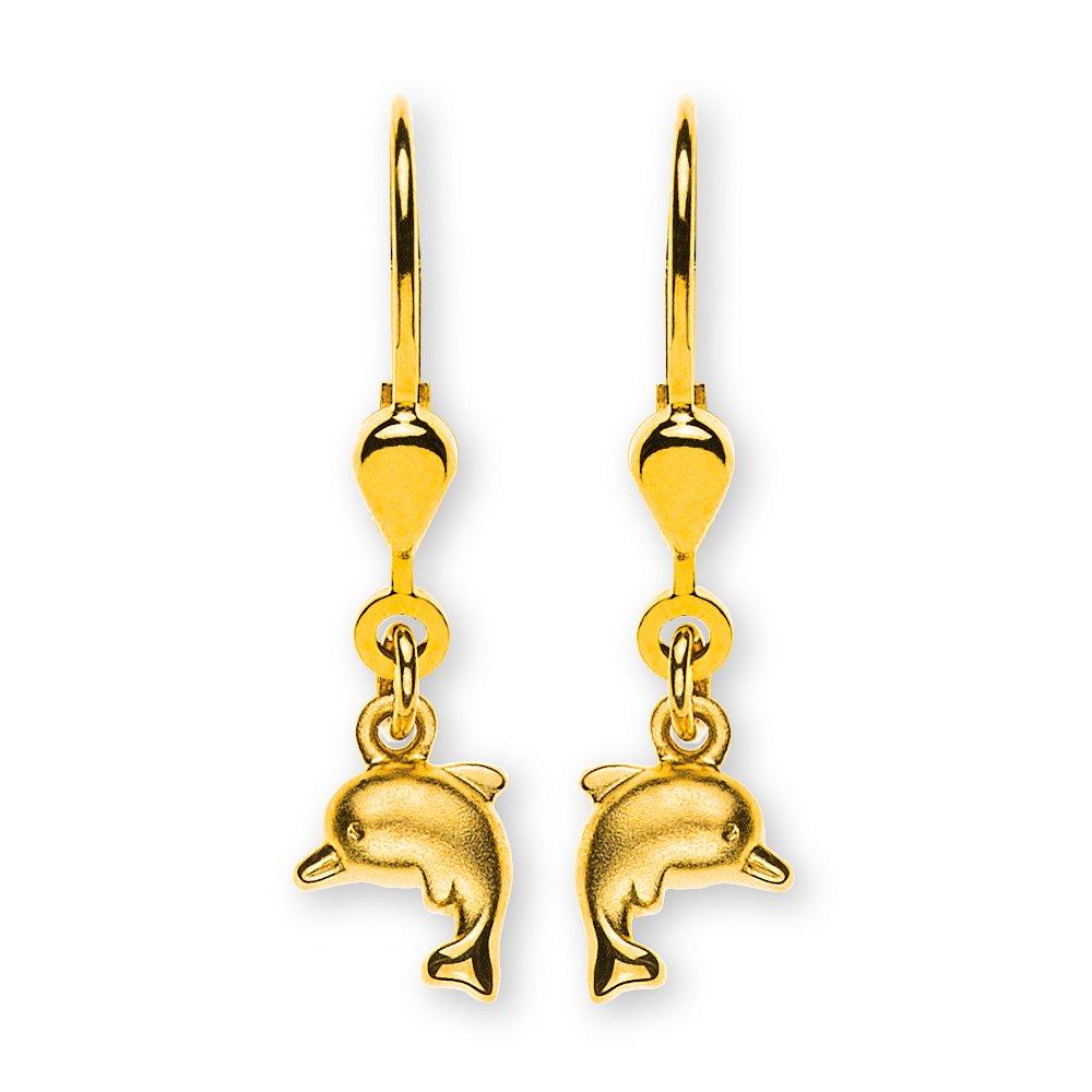 MUAU Schmuck Ohrhänger Delfin Gelbgold 750 Brisur 25mm