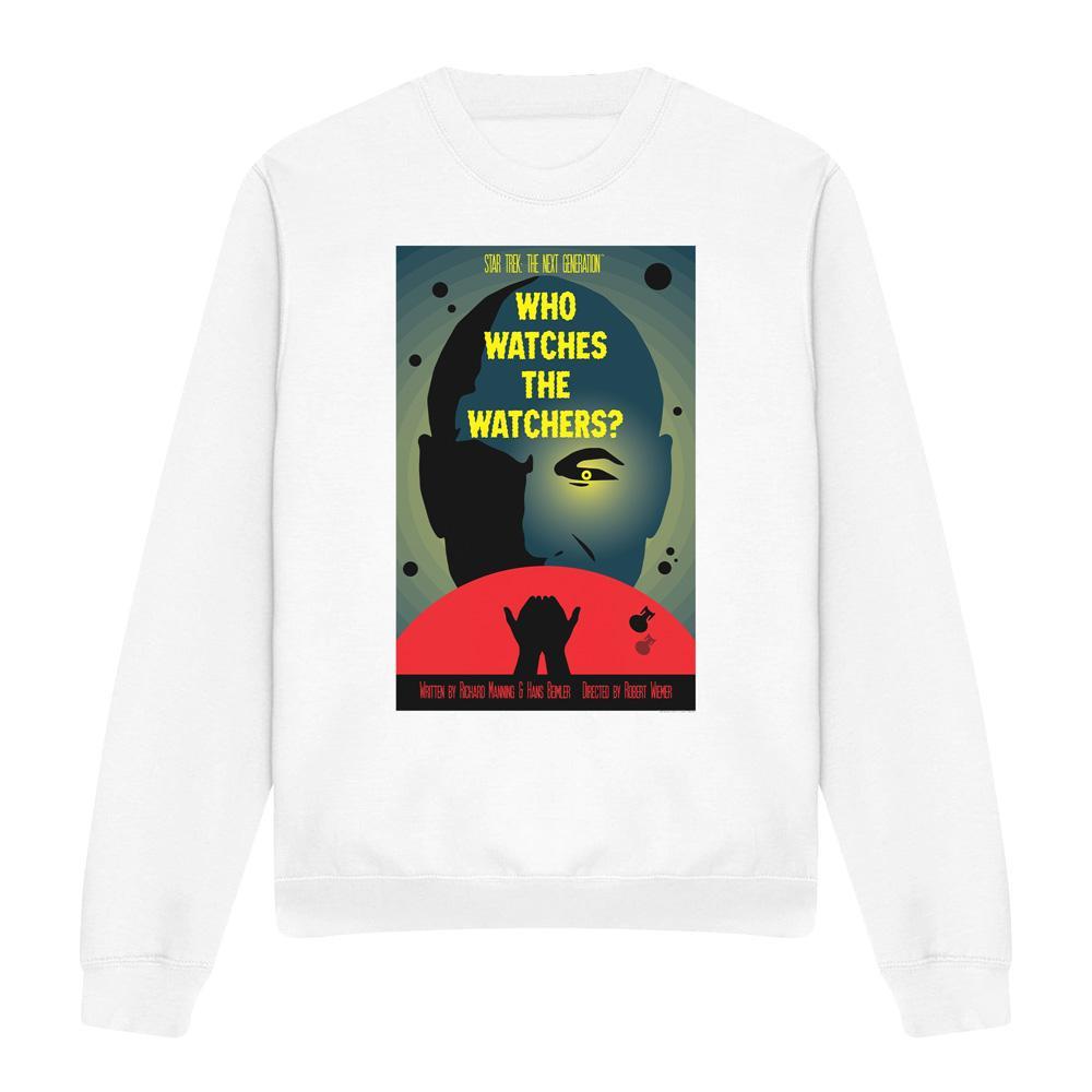 Dieses Sweatshirt zeigt einen Grafikdruck, der von «Who Watches the Watchers?», der vierten Episode der dritten Staffel von Star Trek: The Next Generation, inspiriert ist. Das Design fängt die Essenz des Themas der Episode ein und macht es zu einem unverwechselbaren Stück für Fans.