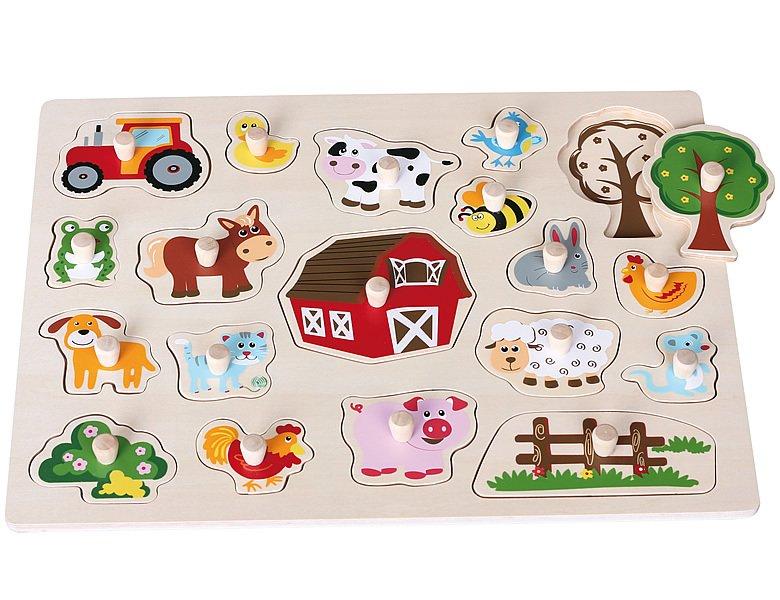 Spielba Holzspielwaren, Puzzle Tiere Gross mit Griffli (19Teile)
