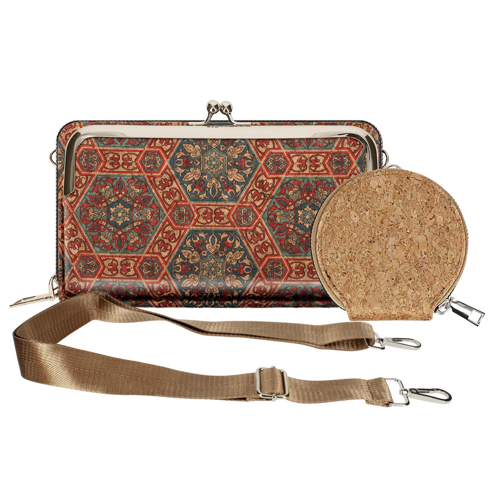 Diese EcoCork Handytasche ist aus Korkstoff gefertigt und bietet ein einzigartiges und umweltfreundliches Accessoire. Die Tasche verfügt über ein lebhaftes Mandala-Muster, das jedem Outfit einen Hauch von Bohème-Stil verleiht. Sie ist mit einem sicheren Verschluss ausgestattet, um persönliche Gegenstände sicher aufzubewahren.