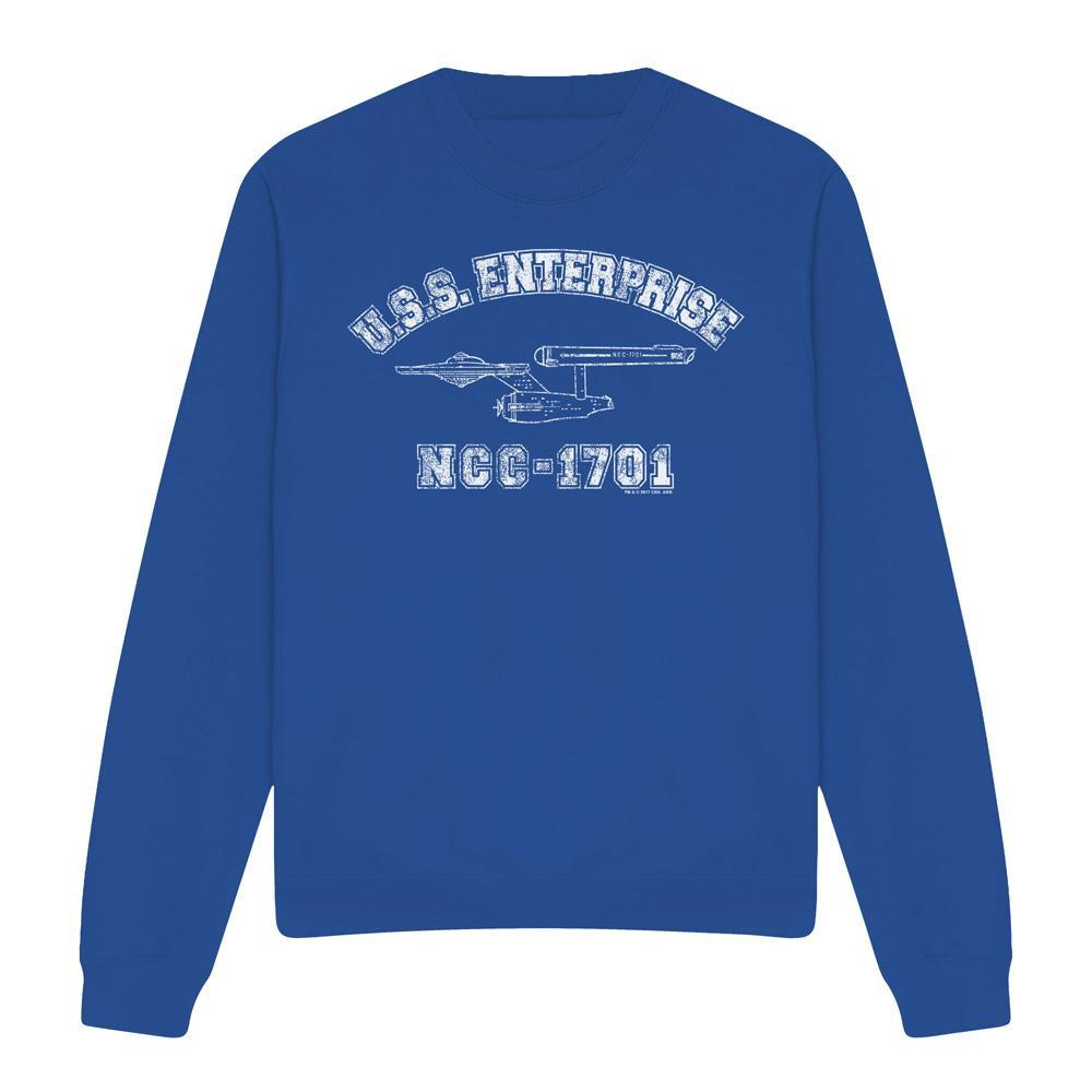 Dieses sportliche Sweatshirt verfügt über ein klassisches Rundhals-Design und eine bequeme reguläre Passform, wodurch es sich für den Alltag oder legere Ausflüge eignet. Die Vorderseite ist mit einem grafischen Druck der U.S.S. Enterprise und ihrer Bezeichnung NCC-1701 verziert, was Fans der ikonischen Serie ansprechen wird.