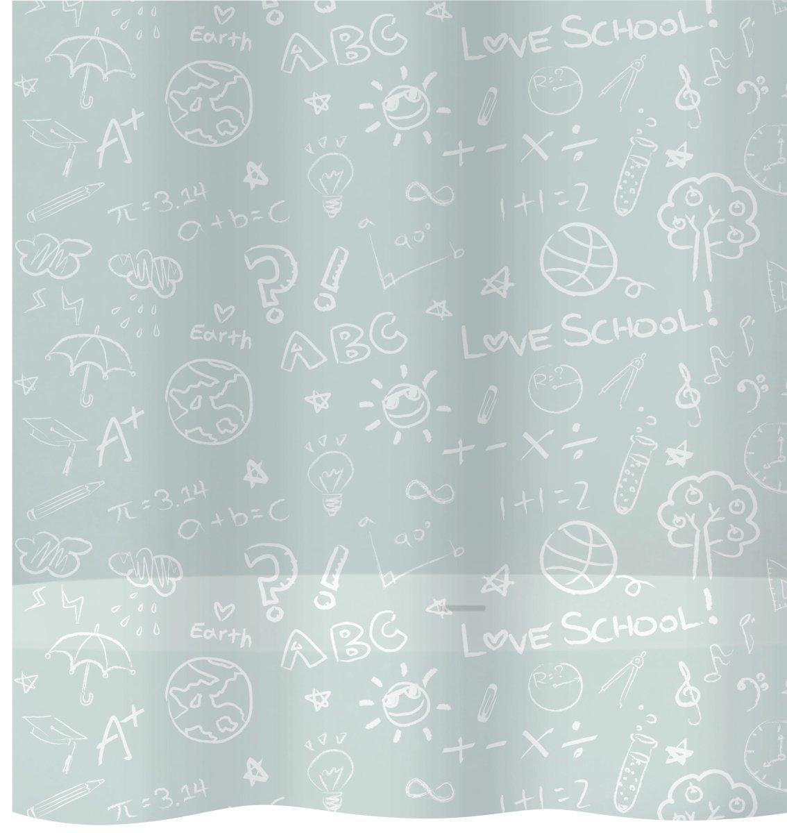 diaqua® Duschvorhang PEVA School 180 X 200 CM - Duschvorhang mit attraktivem Design setzt verspielte Akzente in Ihrem Badezimmer. Dieser trendige Duschvorhang aus hochwertigem, wasserabweisendem PEVA Material ist mit 180x200 cm ideal geeignet für den Einsatz in Ihrer Badewanne oder für Duschvorhangstangen über Eck in der Duschwanne. Der Duschvorhang kann problemlos auf die gewünschte Grösse zugeschnitten werden.