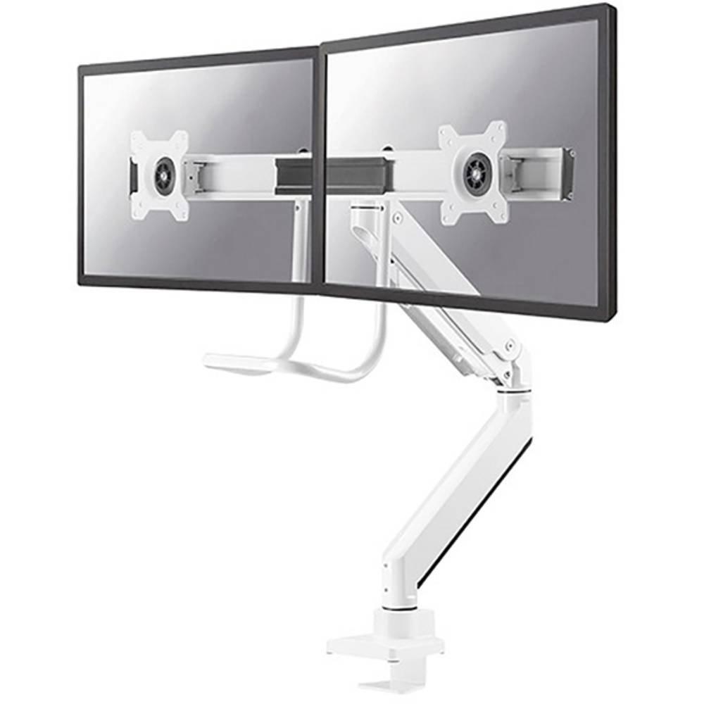 Modell NM-D775DXWHITE ist ein Neig-, Schwenk-und Drehbare Tischhalterung mit Tischhalterungsgriff für zwei Flachbildschirme bis 32 (81 cm). Diese Halterung ist eine gute Wahl für platzsparende Platzierung auf Schreibtischen mittels einer Tischklemme oder einer Tischplattenbohrung. Neomounts by Newstar's einzigartige neig- (20°), dreh- (360°) und schwenkbare (180°) Technologie ermöglicht die Anpassung an jedem Betrachtungswinkel, um im vollem Umfang von den Möglichkeiten des Flachbildschirms zu profitieren. Der Support ist einfach durch Gasfeder höhenverstellbar von 27 bis 60 Zentimetern, sowie in der Tiefe auf Abstand zu verstellen, von 0 bis 63 Zentimetern. Eine einzigartige Kabelführung verdeckt und führt Kabel über die Halterung zum Flachbildschirm. Verstecken Sie Ihre Kabel um den Arbeitsplatz schön und ordentlich zu halten. Die Halterung ist mit einem 180°-Sperr-Mechanismus ausgestattet. Neomounts by Newstars NM-D775DXWHITE mit Tischhalterungsgriff verfügt über drei Drehpunkte und eignet sich für Bildschirme bis 32 (81 cm). Die Tragfähigkeit dieses Produkt ist 2 bis 8 kg je Bildschirm. Die Schreibtisch-Halterung ist geeignet für Bildschirme mit VESA Lochmuster 75x75 oder 100x100mm. Verschiedene Lochmuster können unter Verwendung Neomounts by Newstars VESA Adapterplatten abgedeckt werden. Durch die Verwendung eines ergonomischen flachen Schirmeinfassung verhindern Sie, Nacken- und Rückenbeschwerden. Ideal für den Einsatz in Büros und auf Theken oder in einem Empfangsbereich. Alle Installationsmaterialien sind in der Produktlieferung enthalten.