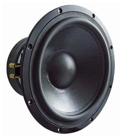 30 cm (12") High-End-Tieftöner mit schwarzer Zellulose-Membran, sehr großem Magnetsystem und wuchtigem Aluminium-Druckgusskorb. Durch die mehrfache Belüftung der Schwingspule (Polkernbohrung, Bohrungen in der Polplatte, Öffnungen im Aluminiumdruckgusskorb