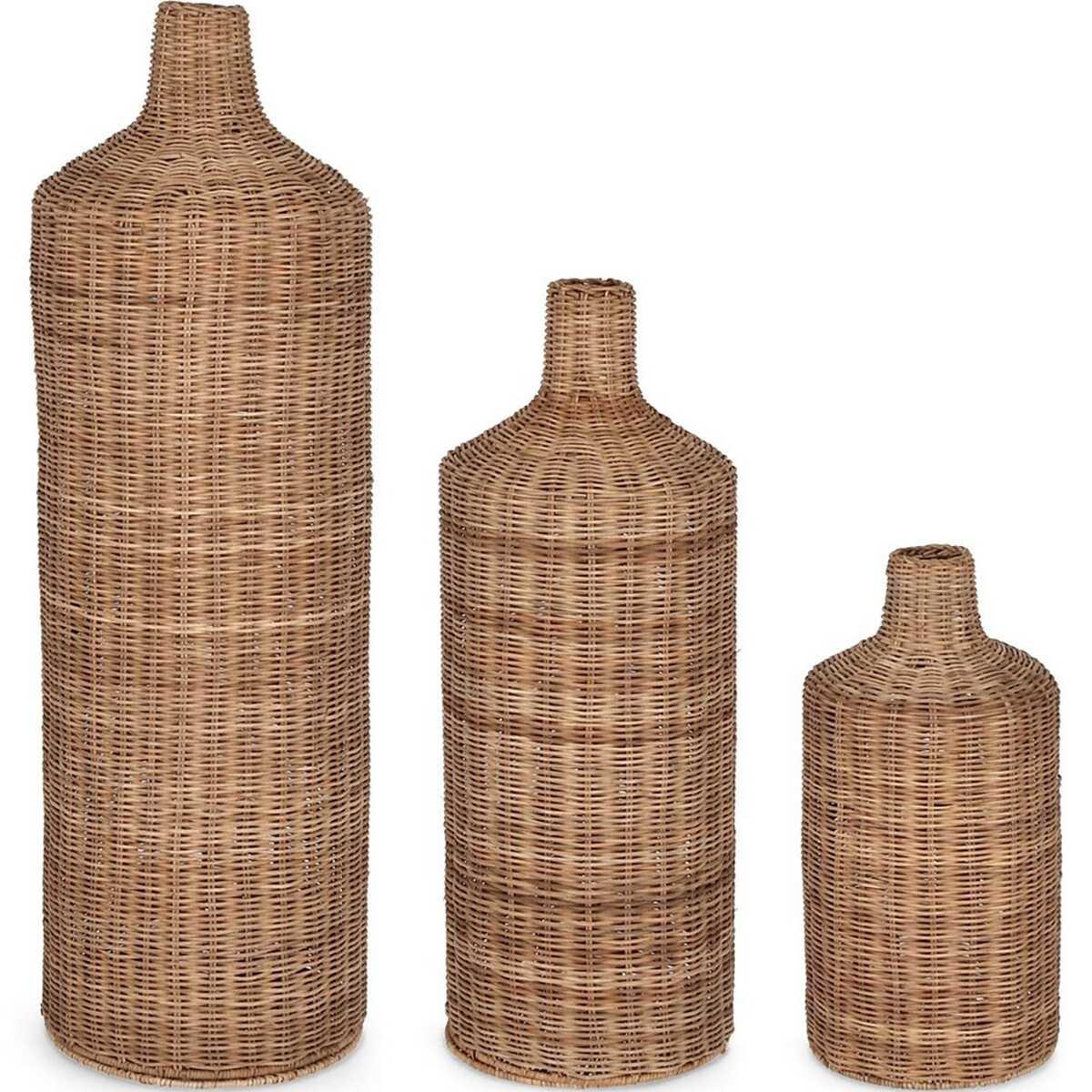 Erleben Sie die Schönheit von Handwerkskunst und Naturmaterialien mit dem 3er Set Flasche Dekor Kadin. Aus Rattan, Metall und Glas gefertigt, bringt dieses Set ein einzigartiges Merkmal in Ihr Zuhause.