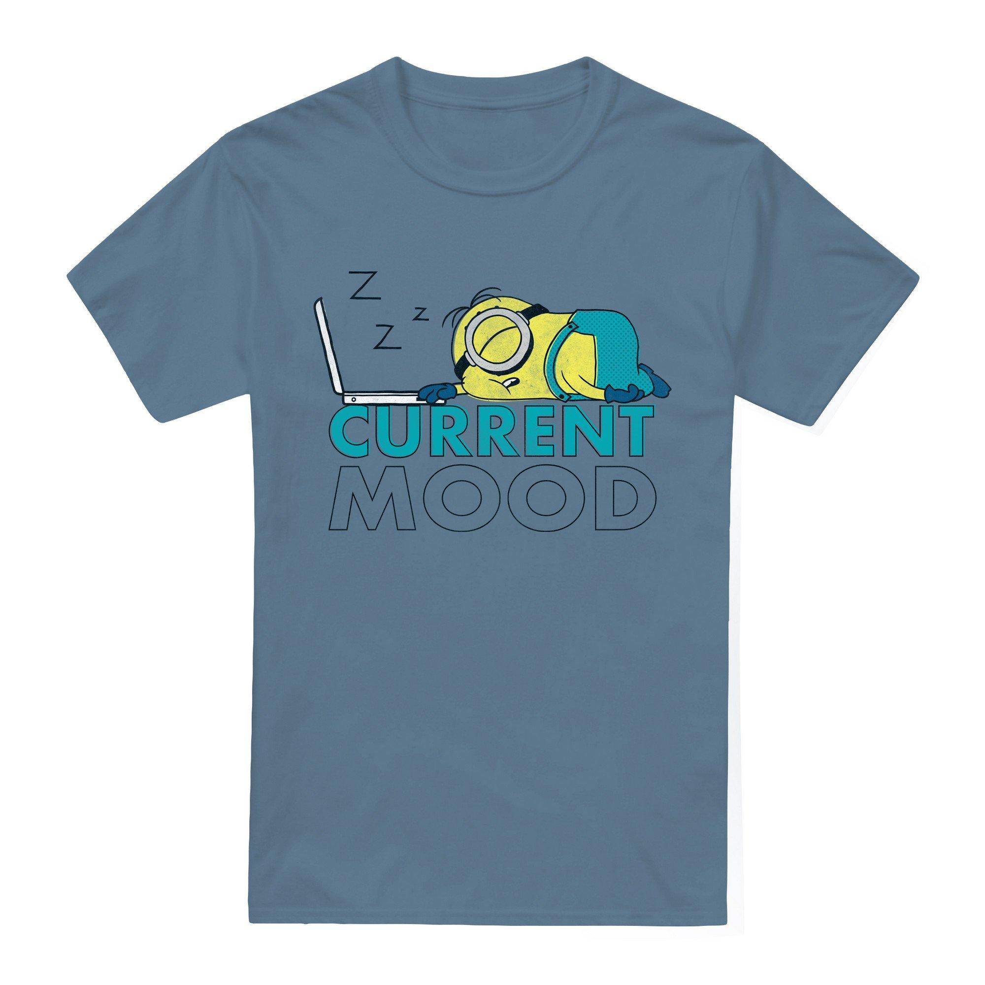 Dieses T-Shirt zeigt eine verspielte Grafik, die die Essenz einer Montagsstimmung einfängt. Das Design zeigt einen Charakter, der auf einem Laptop schläft, mit dem Text "CURRENT MOOD" darunter, was es zu einer sympathischen und lustigen Ergänzung für jede Freizeitgarderobe macht.