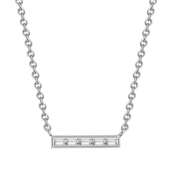 Du magst Schmuckdesigns im modernen Geo-Design, kannst aber auch Glitzer und Glamour nicht widerstehen? Dann ist diese Kette des Labels Glanzstücke München eine hervorragende Wahl! An einer zarten Ankerkette schmiegt sich der barrenförmige Anhänger aus fünf Zirkoniakristallen in Baguetteschliff in dein Dekollete und bringt das Licht zum Funkeln. Sowohl die Kette als auch die Fassung bestehen aus 925er Sterlingsilber und sind mit kühl glänzendem Rhodium zuverlässig vor dem Anlaufen geschützt. Praktisches Extra: Das Verlängerungsstück mit Federringverschluss sorgt für eine schnelle Längenanpassung.