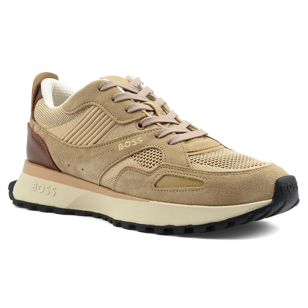 Die Jonah Runn Schuhe der Marke Hugo Boss sind vielseitige Schnürschuhe für den täglichen Gebrauch. Sie verfügen über ein Textil Wildleder oben und oben, bietet ein komfortables und elegantes Aussehen. Das Futter ist auch aus Textil gefertigt und verleiht dem Design einen Hauch von Finesse. Die Einlegesohlen sind abnehmbar und aus Textil gefertigt, wodurch die Wartung von Schuhen erleichtert wird. Die Laufsohlen sind aus Gummi gefertigt und bieten Haltbarkeit und Verschleißfestigkeit. Zu den Details des Schuhs gehören ein Samtleder und ein Textil-Sneaker, der einen Hauch von Raffinesse verleiht. Die Schuhe sind in beige, einer klassischen und neutralen Farbe erhältlich. Die Jonah Runn Schuhe von Hugo Boss sind so konzipiert, dass sie eine komfortable Passform, optimalen Komfort und außergewöhnliche Haltbarkeit bieten.