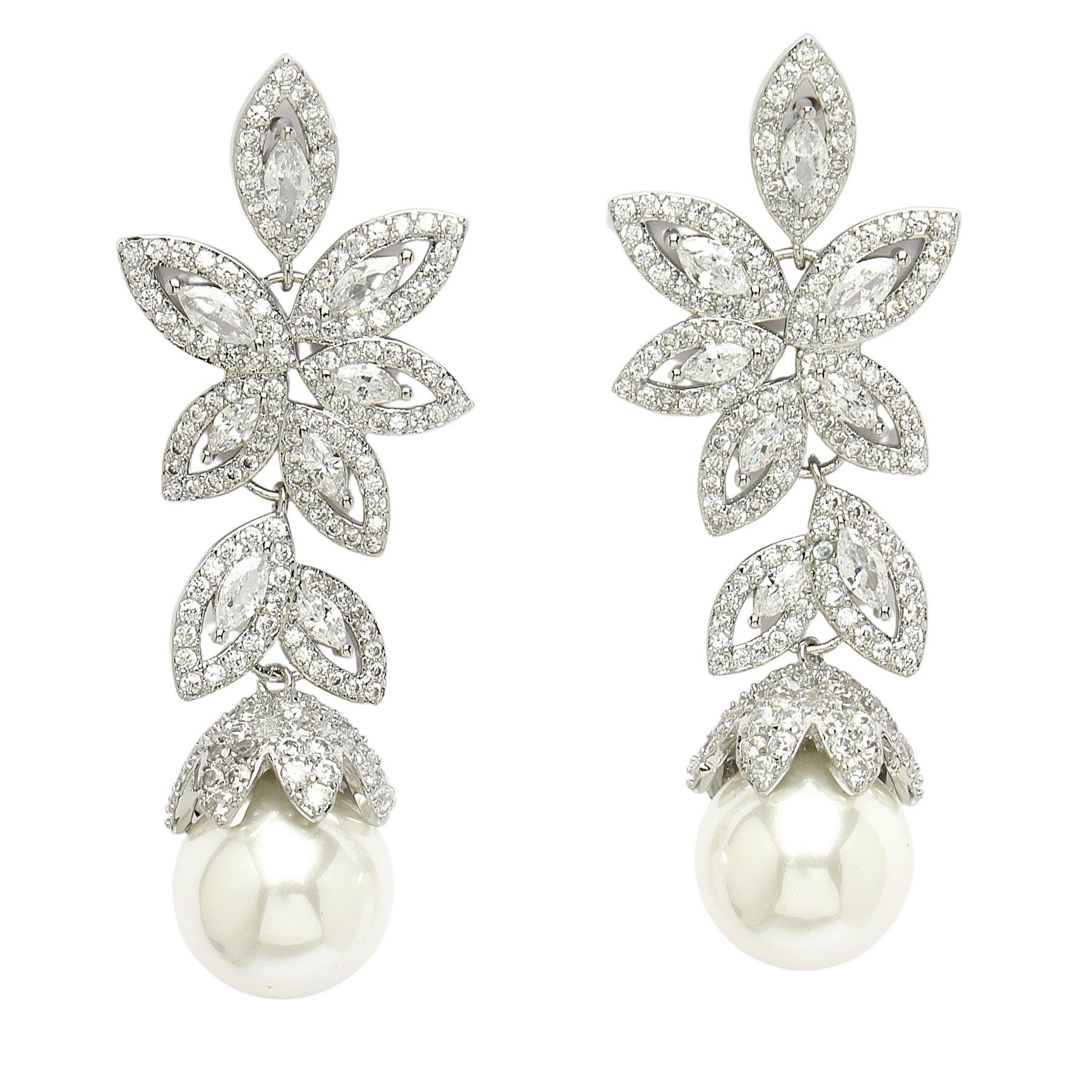 Verleihen Sie Ihrem Stil mit den zarten Zirkonia-Ohrhängern in floraler Form einen Hauch von Eleganz. Diese Ohrringe vereinen Raffinesse und Verspieltheit und sind perfekt, um jedem Outfit einen Hauch von Eleganz zu verleihen. Ob zu einem festlichen Anlass oder einfach nur, um Ihrem Alltagslook einen Hauch von Glamour zu verleihen – mit diesen Ohrringen setzen Sie garantiert ein Statement. Größe: 1,9 cm x 5,1 cm | Beschichtung: Rhodiumplattiert | Verschluss: Stecker und Rückseite