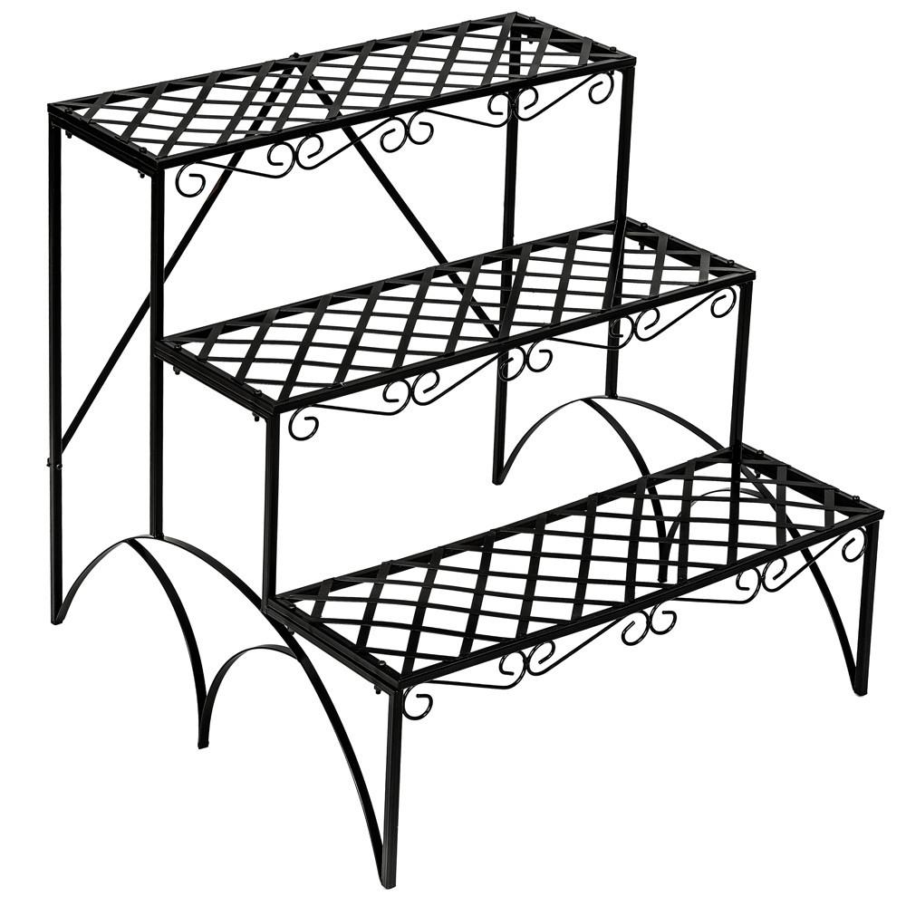 Verleihe Deinem Garten, Balkon oder Deiner Terrasse mehr Grün durch diese stilvolle Blumentreppe. Auf 3 Ebenen kannst Du Deine Pflanzen und Blumen versetzt auf der Pflanzentreppe platzieren. Das Gestell der 3-stufigen Blumentreppe ist aus pulverbeschichtetem Metall gefertigt und damit für Indoor und Outdoor geeignet.